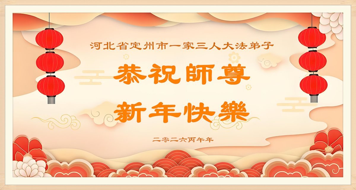 谢谢师父在过去一年里对我们夫妻的保护与加持,使弟子们走好了师父给我们铺就的证实法讲真相之路。在新的一年里,我夫妻二人仍将在师父法光照耀下更加精進,学好法勇猛实修,讲好大法真相,跟师父回家。弟子叩拜师,师父辛苦了! 河北邯郸清河县夫妻俩 二零二六年一月二十四日 河北省唐山市路北区一家三位大法弟子敬上恭祝师尊新年好!