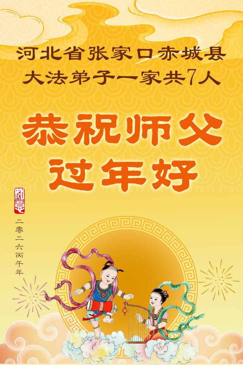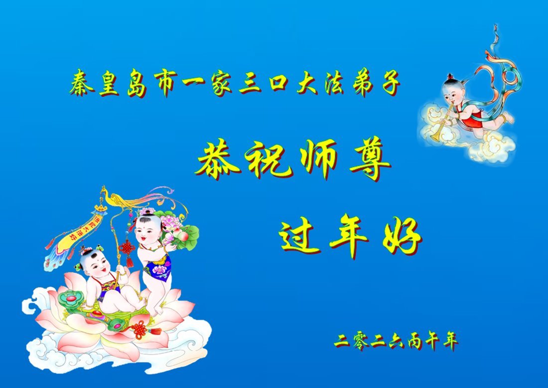 师尊您好,师尊您辛苦了,祝师尊新年快乐!诚挚感恩师尊为救度弟子付出的一切!弟子唯有精進实修,用大法真善忍法理洗净自己,兑现誓约不辱使命,多救众生,以报师父救度之恩。 河北省廊坊市永清县后奕乡大法弟子 二零二六年一月二十四日 河北省张家口赤城县大法弟子一家七人恭祝师尊过年好!