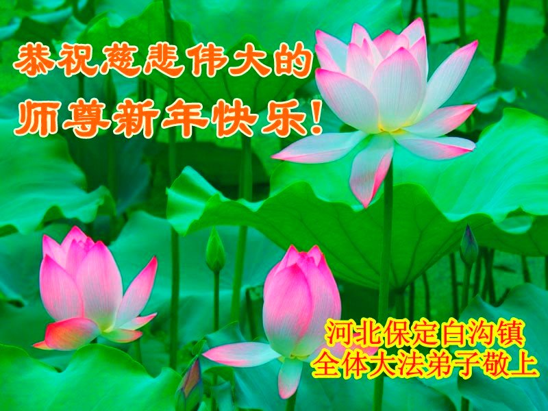 恭祝慈悲伟大的师尊新年快乐! 河北省保定市白沟镇全体大法弟子敬上 河北省保定市白沟镇全体大法弟子恭祝慈悲伟大的师尊新年快乐!