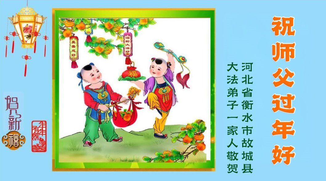 恭祝慈悲伟大的师父过年好! 河北省保定市白沟镇全体大法弟子敬上 河北省保定市白沟镇一大法弟子携全家恭祝慈悲伟大的师尊新年快乐!