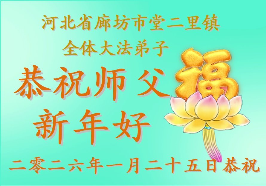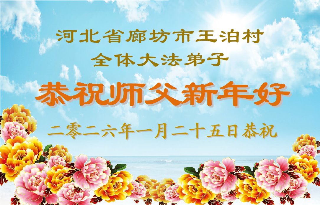 恭祝师父新年好 河北省廊坊市王泊村全体大法弟子敬上 二零二六年一月二十五日 河北省廊坊市堂二里镇全体大法弟子恭祝师父新年好!