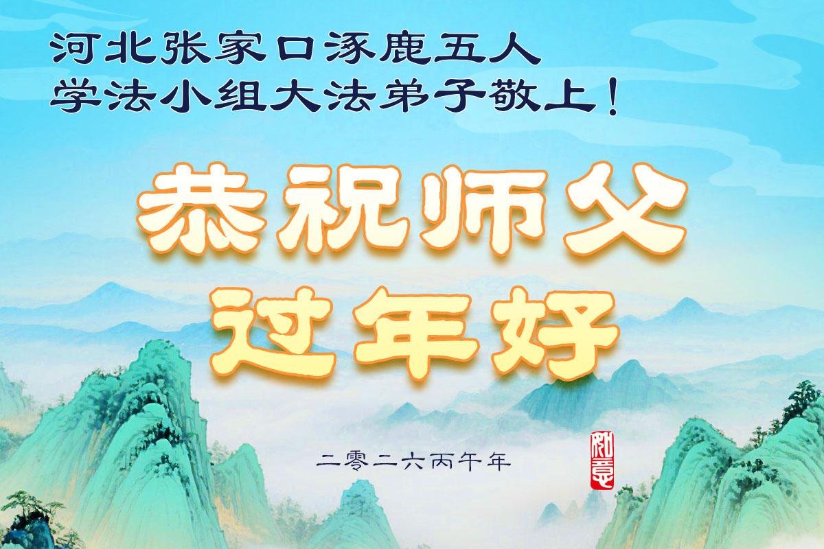 在新的一年里,我们要坚持认真学法,遇到问题向内找,做好师父要求做的三件事,让更多的世人感受到大法的慈悲与美好! 河北省唐山市路北区一家三位大法弟子敬上 二零二六年一月二十四日 河北张家口涿鹿五人学法小组大法弟子恭祝师尊过年好!