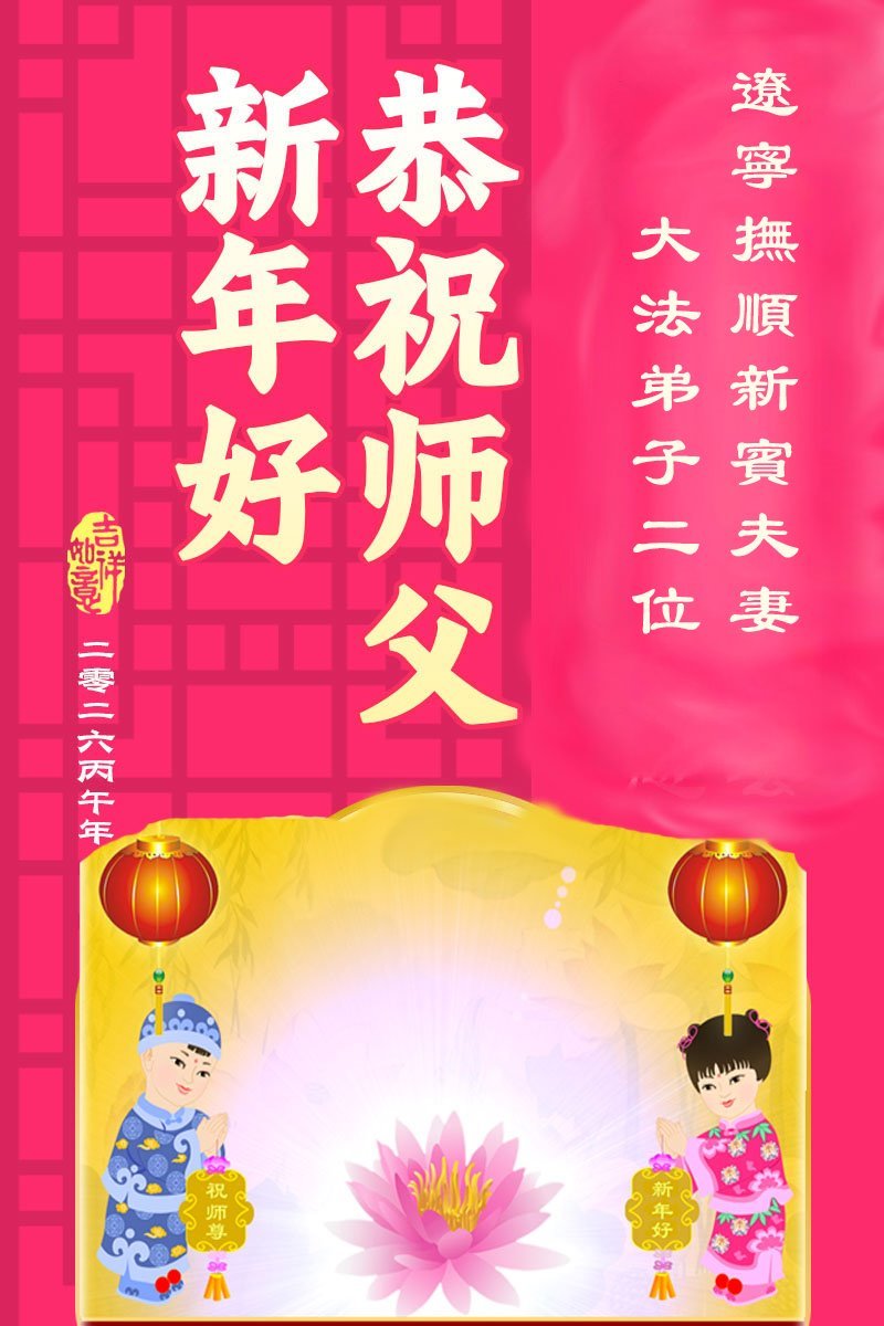 恭祝慈悲伟大的师尊过年好! 辽宁省锦州市郊区四位大法弟子敬上 二零二六年一月二十五日 辽宁省抚顺市大法弟子恭祝师尊新年好!