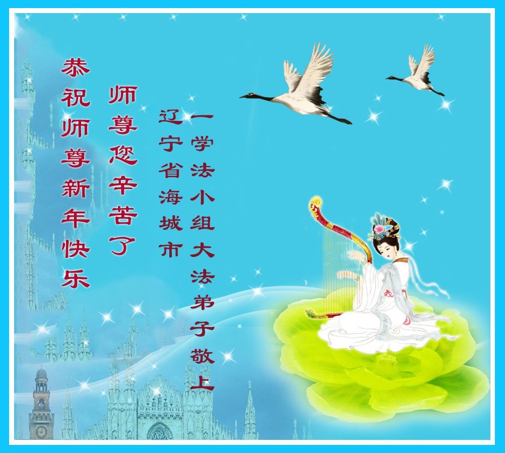 恭祝师尊新年快乐!叩谢师尊! 辽宁省营口市西市区两位大法弟子敬上 辽宁省营口市五位大法弟子恭祝师尊新年快乐!