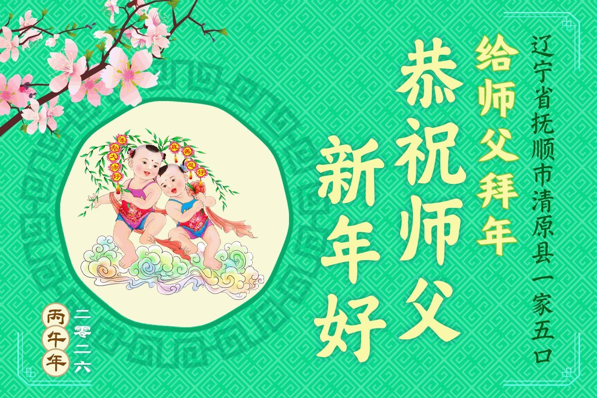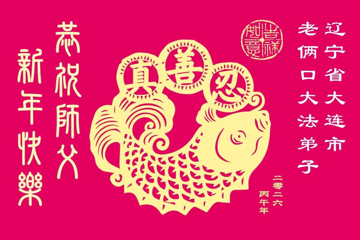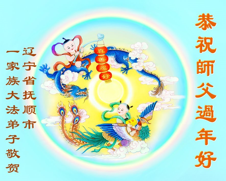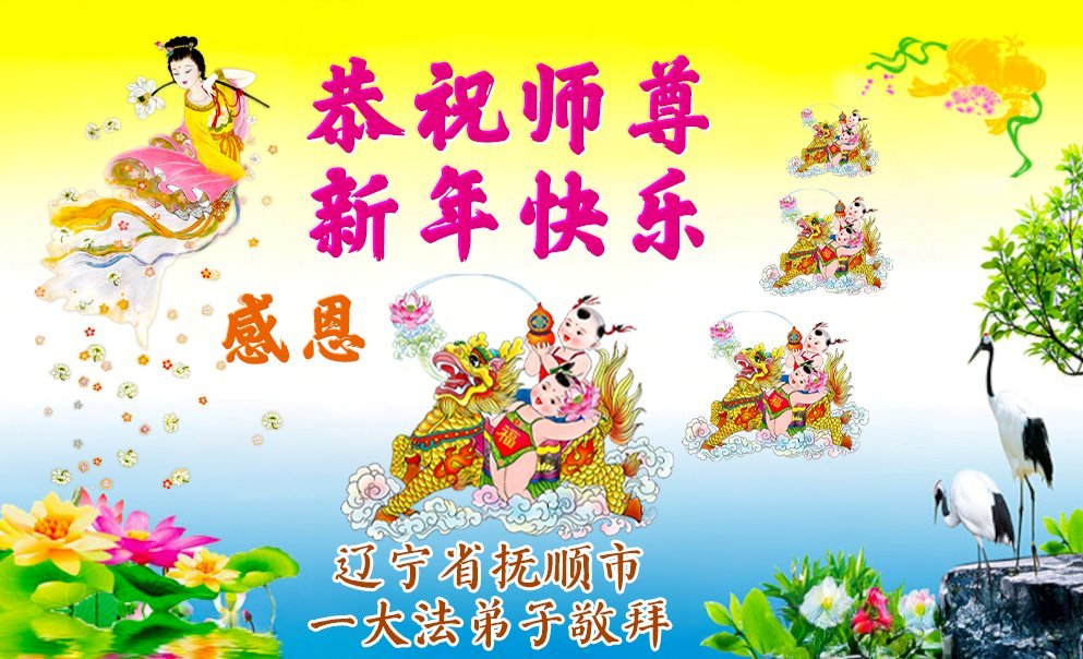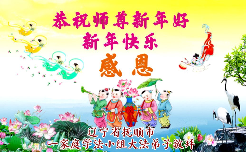 恭祝师尊新年好! 辽宁省大连市一学法小组大法弟子敬上 辽宁省抚顺市清原县一家五口大法弟子恭祝师父过年好!