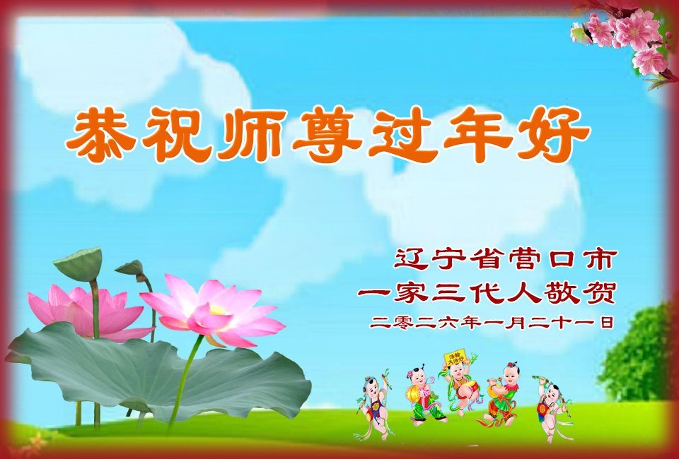 恭祝师尊新年快乐! 辽宁省营口市五位大法弟子敬上 辽宁省营口市一家大法弟子三代人恭祝师尊过年好!