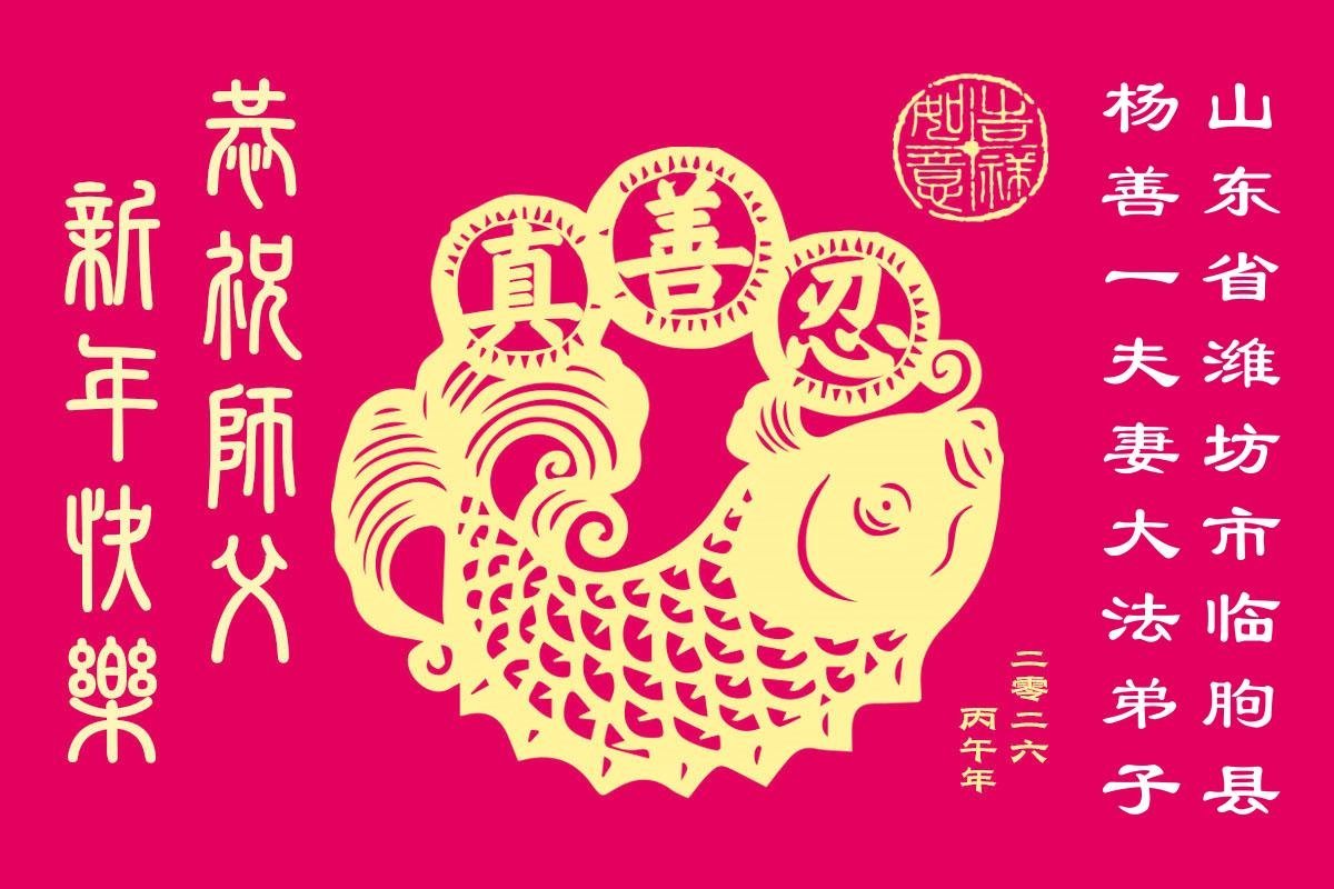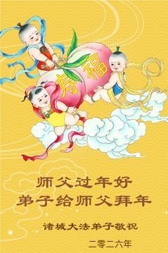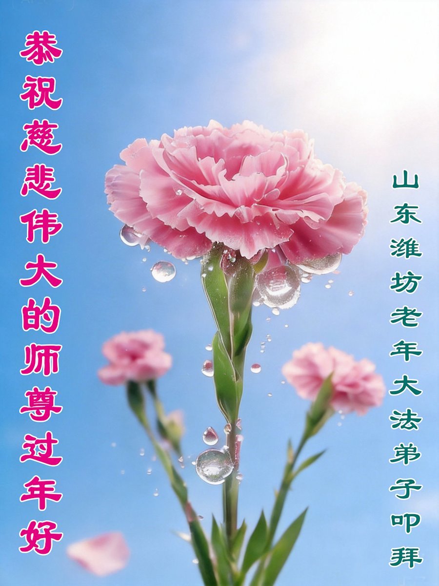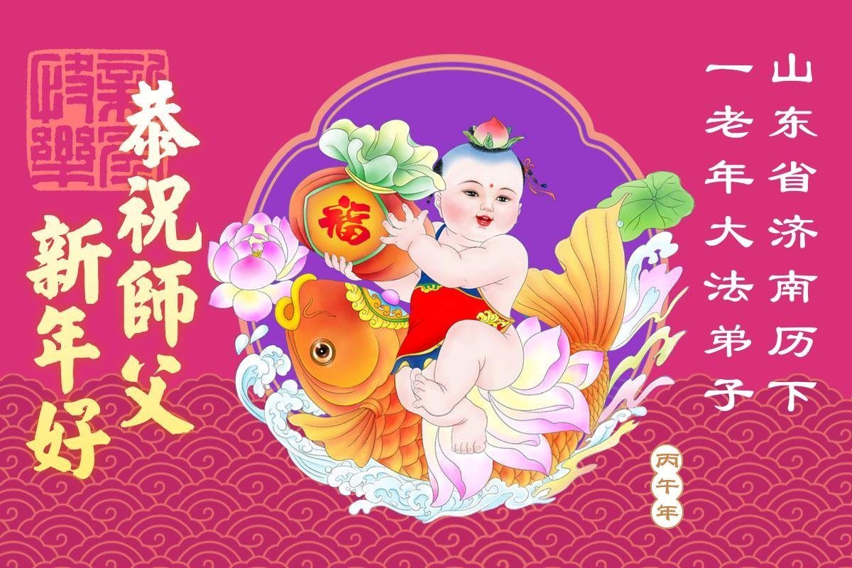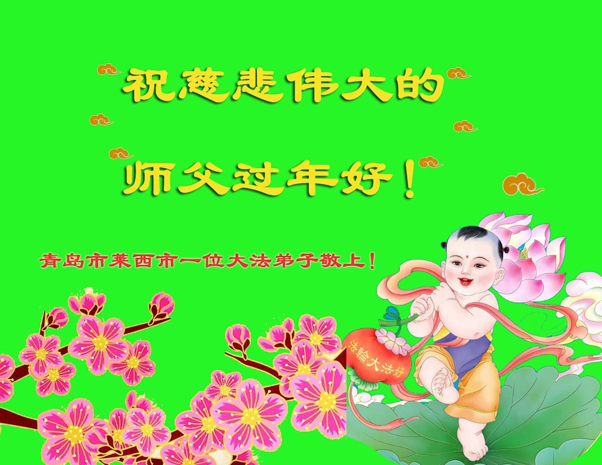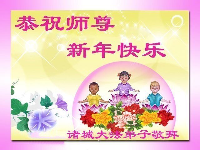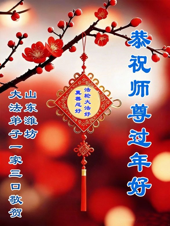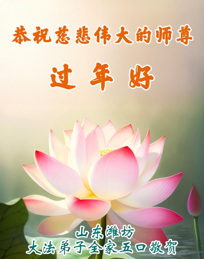 恭祝师尊过年好!师尊您辛苦了! 法轮大法好!真善忍好! 山东省青岛市莱西市一大法弟子敬上 山东省威海一学法小组大法弟子恭祝师父新年快乐!