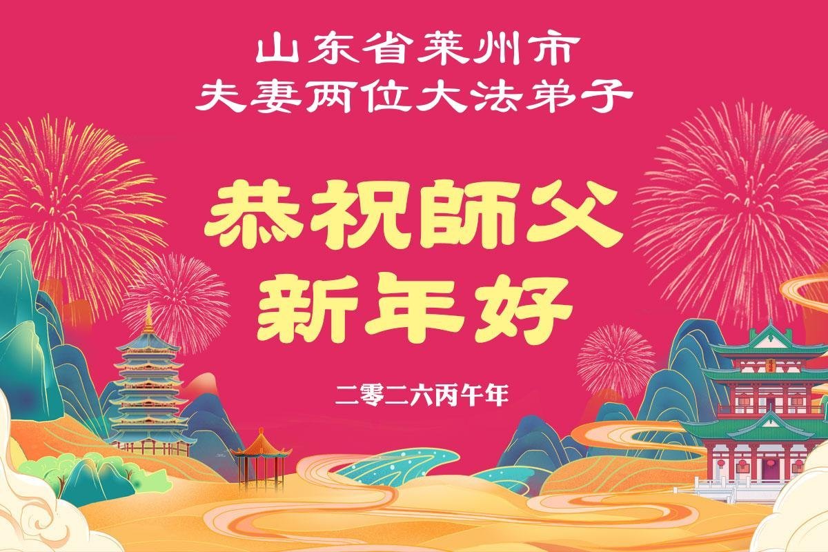 恭祝师父过年好!感恩师尊慈悲救度! 山东省潍坊市临朐县一学法小组二位大法弟子敬上 二零二六年一月二十二日 山东省潍坊市临朐县七贤镇一夫妻大法弟子恭祝慈悲伟大的师父新年快乐!
