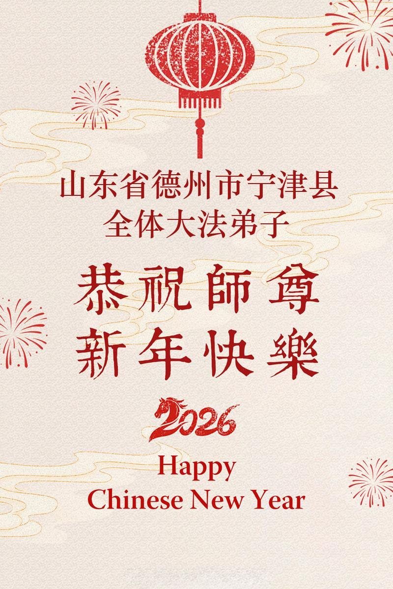 恭祝师父新年快乐! 潍坊市临朐县一夫妻大法弟子携全家六口人敬上 二零二六年一月二十一日 山东省德州市宁津县大法弟子恭祝师尊新年好!