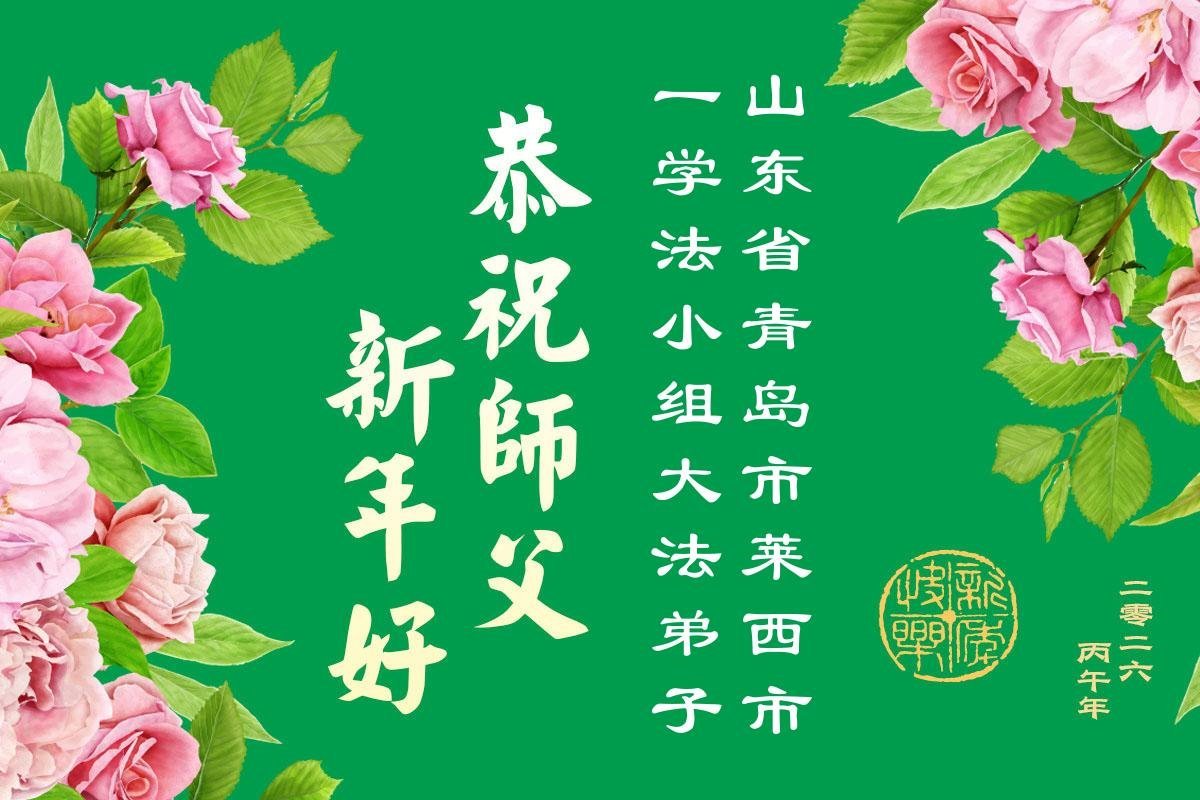 山东省青岛莱西市城区一学法小组两位大法弟子恭祝师尊新年快乐!