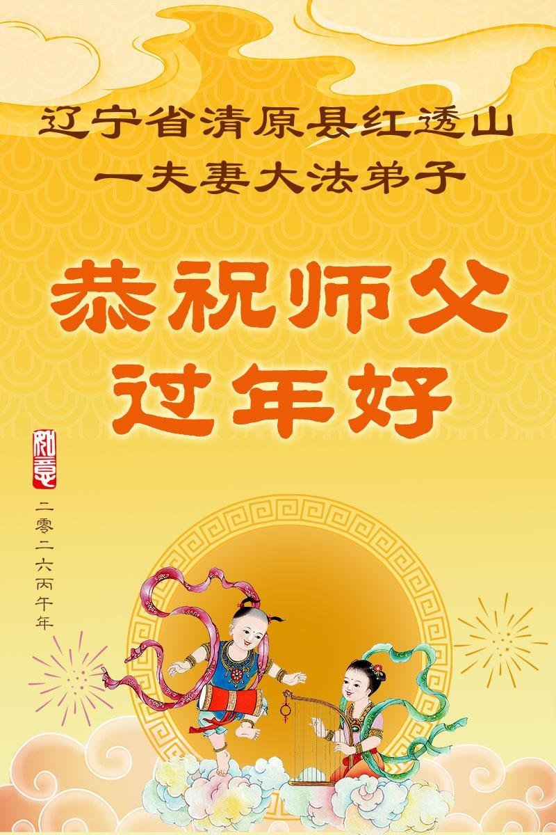 恭祝师尊过年好! 辽宁省抚顺市清原县红透山大法弟子敬上 辽宁省抚顺市清原县红透山镇一家二位大法弟子恭祝师尊过年好!