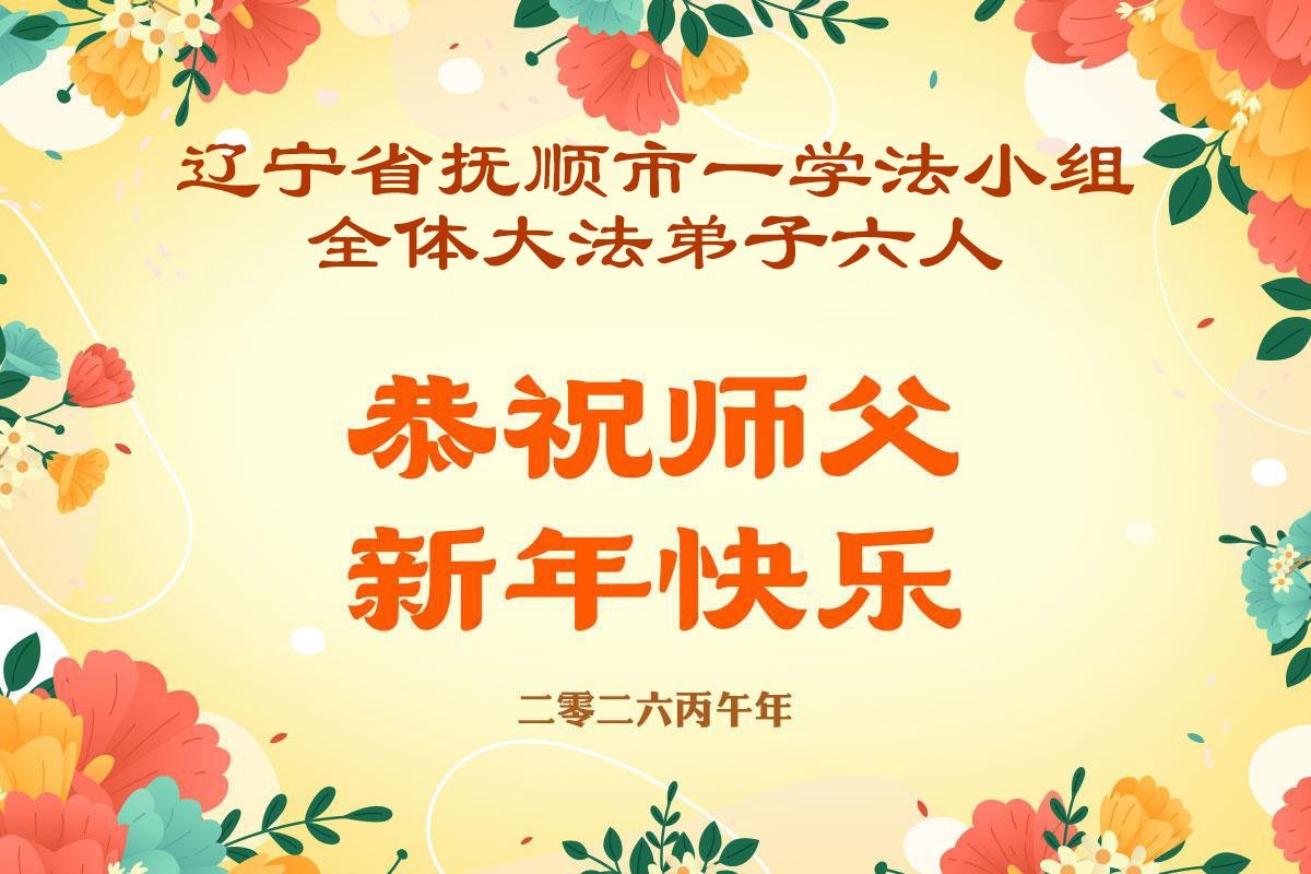 随师救度众生又走过了一年,师尊用巨大的承受为我们延续着这宝贵的修炼时间,我们万分珍惜和感恩。我们一定听师父的话,修好自己,多救人,完成使命,兑现誓约。 辽宁省抚顺市一学法小组全体大法弟子共6人敬上 二零二六年一月二十二日 辽宁省抚顺市东部一学法小组大法弟子恭祝师父新年快乐!