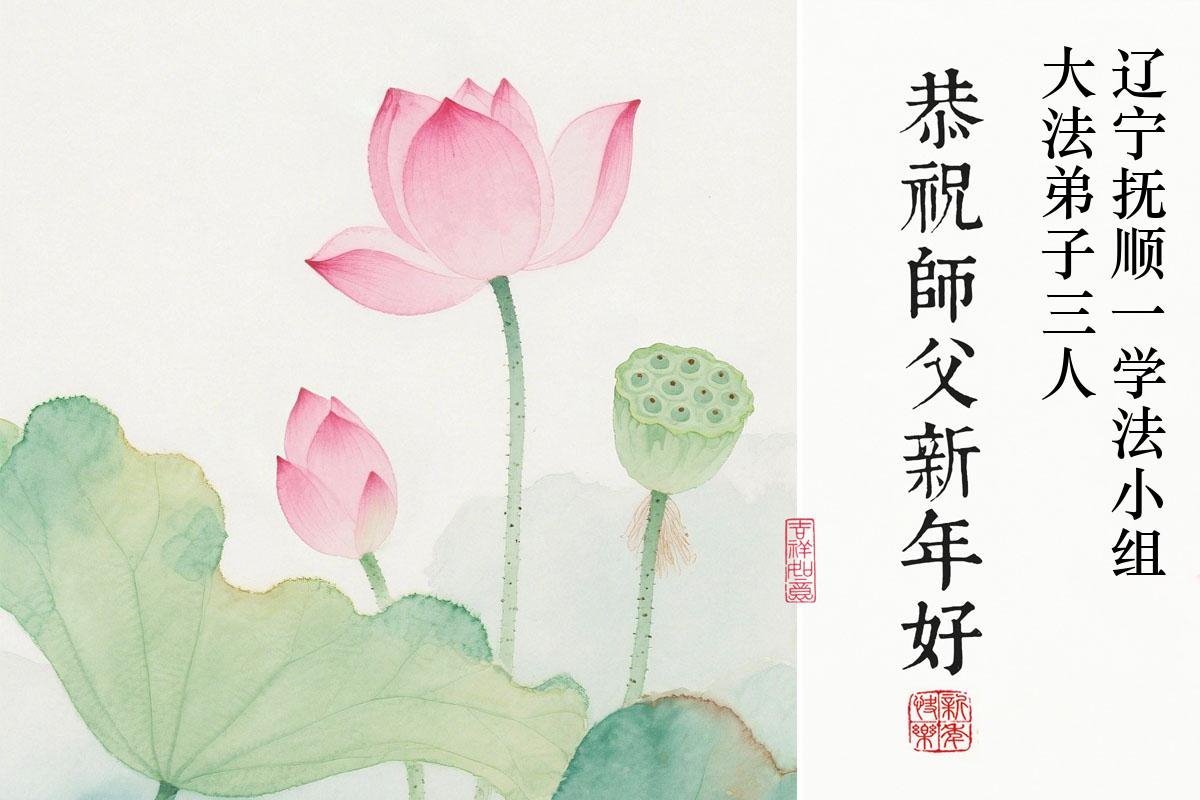 恭祝师尊新年好!新师尊新年快乐! 弟子会多救众生,完成使命,惟愿师尊笑! 辽宁朝阳一大法弟子一大法弟子 二零二六年一月二十三日 辽宁省抚顺市新抚区一学法小组大法弟子三人恭祝师尊新年好!
