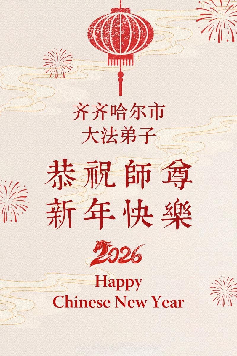 我们在这所剩不多的时间里,一定实修自己,做到学好法,多救人,在提高心性上多下功夫,做真修弟子,兑现史前誓约。 大庆红岗区银浪新城全体大法弟子 二零二六年一月十七日 黑龙江省齐齐哈尔市大法弟子恭祝师父新年好!