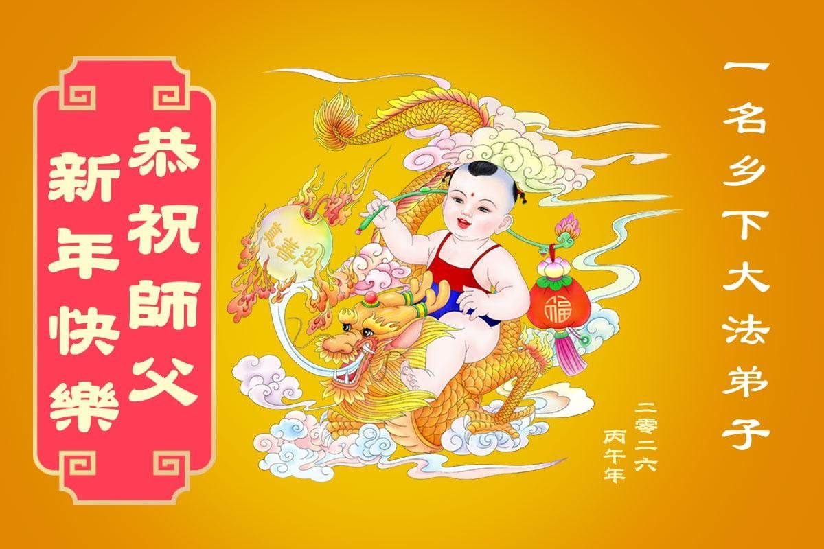 恭祝伟大师尊过年快乐! 一年一年盼望师父回国 一天一天期待跟师父回家 一颗颗泪洙从脸颊滑下 伟大的师父啊弟子好好学法 一切人辛苦难都是旧势力安插 我用法轮大法的法理去破除它 我不求世间的富贵荣华 不执著这世上暂住的家 放下世间虚幻的一切情 珍惜得到万古不遇的大法 兑现誓约带众生回家 伟大的师尊您辛苦了 黑龙江省佳木斯一大法弟子敬贺 二零二六年一月二十三日 黑龙江省大庆市一夫妻俩大法弟子恭祝师父新年好!