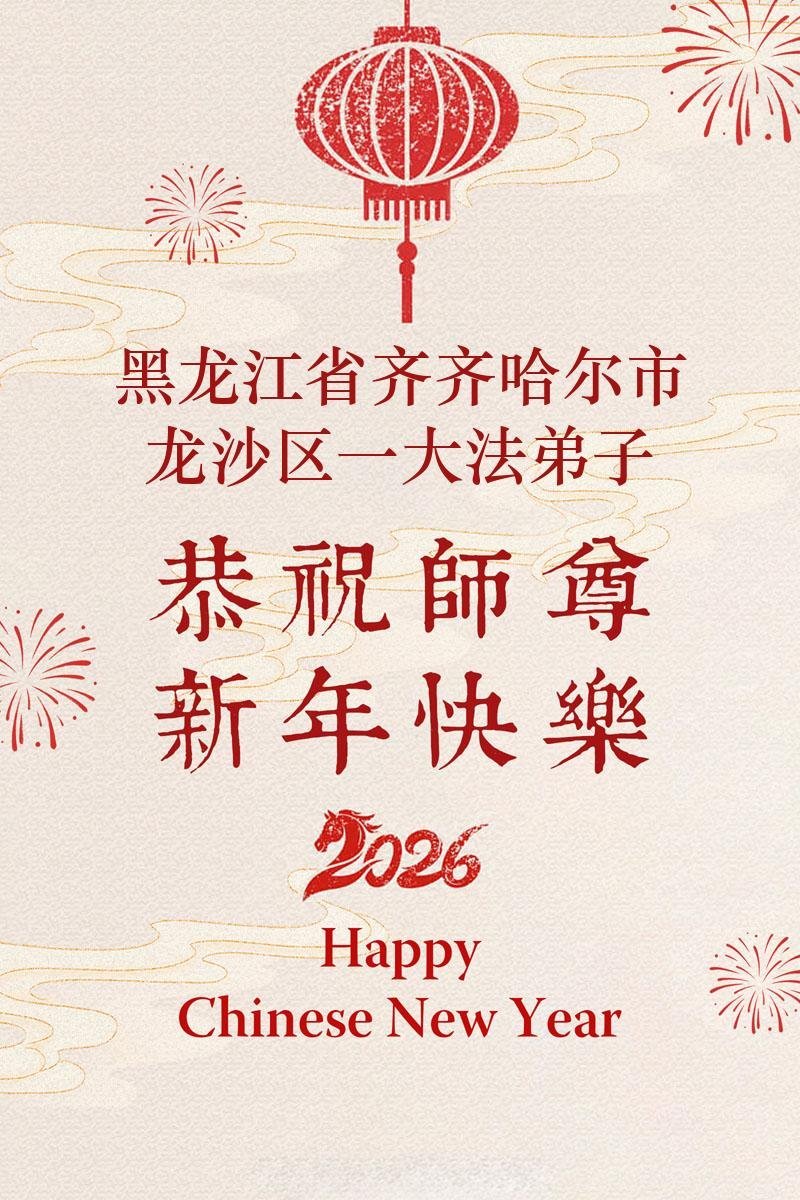恭祝师尊过年好! 齐齐哈尔富拉尔基区全体大法弟子敬上 二零二六年一月十八日 黑龙江省大庆市大法弟子二人恭祝师尊新年快乐!