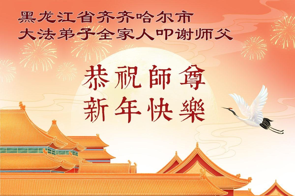 尊敬的师尊您好!中国传统的大年就要到了,弟子向师尊献上发自心底的感恩!感恩伟大的师尊,让弟子知道了《转法轮》是回天国的阶梯。感恩慈悲伟大的师尊,让弟子知道了什么是无私无我。感恩伟大的师尊,让弟子知道了放下旧观念才能找到真我。感恩伟大的师尊,带领众生走出劫难。 师尊为众生的巨大承受,是弟子无法想象的。师尊慈悲救度的洪恩高德永远也道不尽!弟子想念师尊,盼师尊早日回国,师徒相见。弟子要跟随师尊,回真正的家园。 黑龙江省佳木斯一大法弟子携家人叩拜 二零二六年一月十九日 黑龙江省齐齐哈尔市富区大法弟子恭祝师尊过年好!