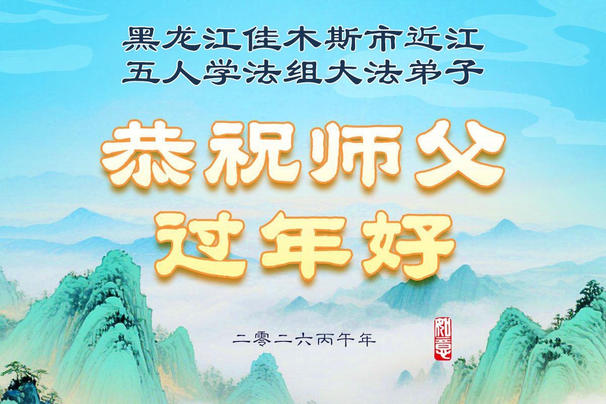 恭祝慈悲伟大的师父过年好!在新的一年,弟子要学好法,发好正念,多救人,互相救助,共同精進!谢师恩! 黑龙江省佳木斯近江五人学法小组大法弟子敬上 二零二六年一月二十三日 黑龙江省佳木斯一大法弟子恭祝伟大师尊过年快乐!
