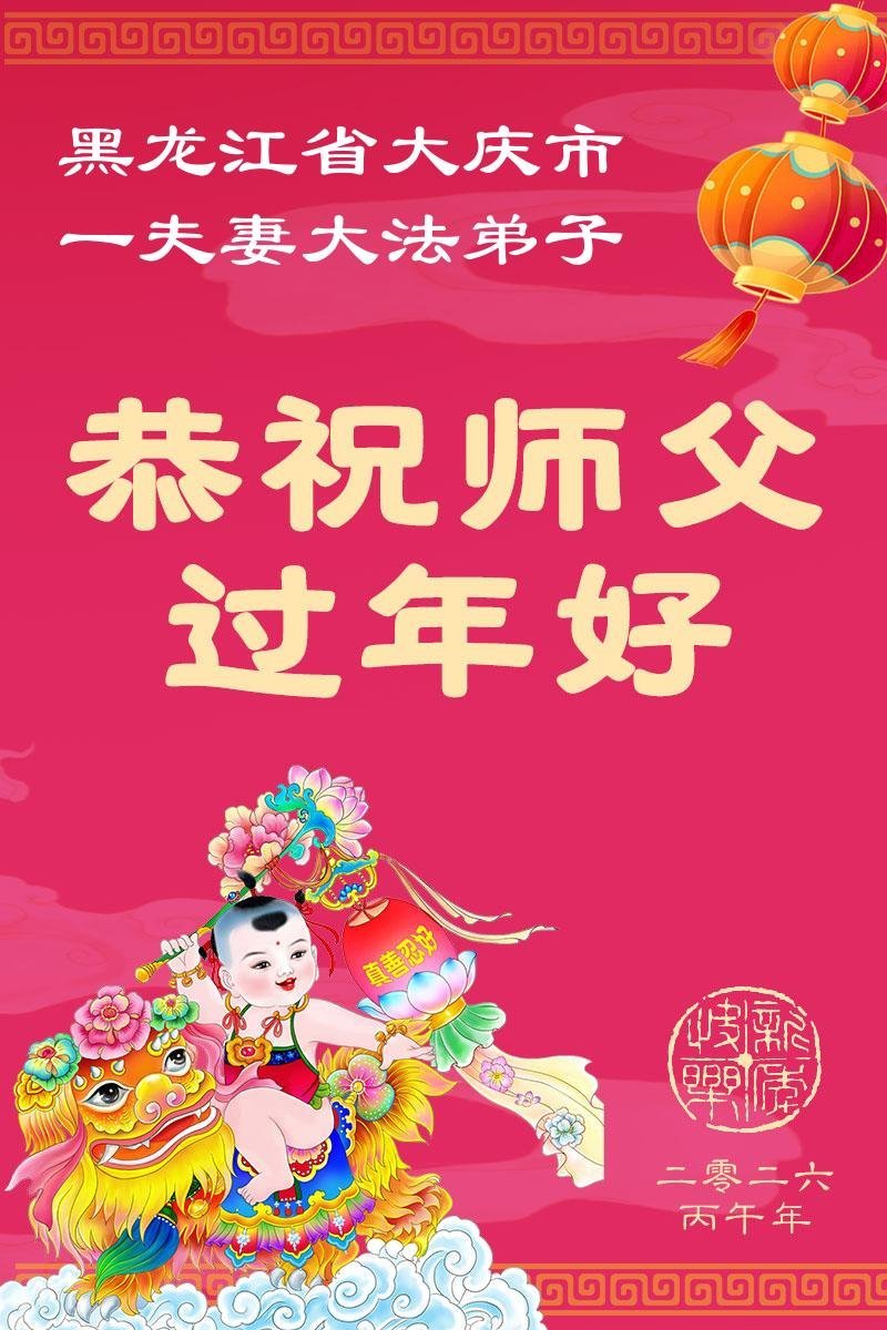 黑龙江省大庆市一夫妻俩大法弟子恭祝师父新年好!
