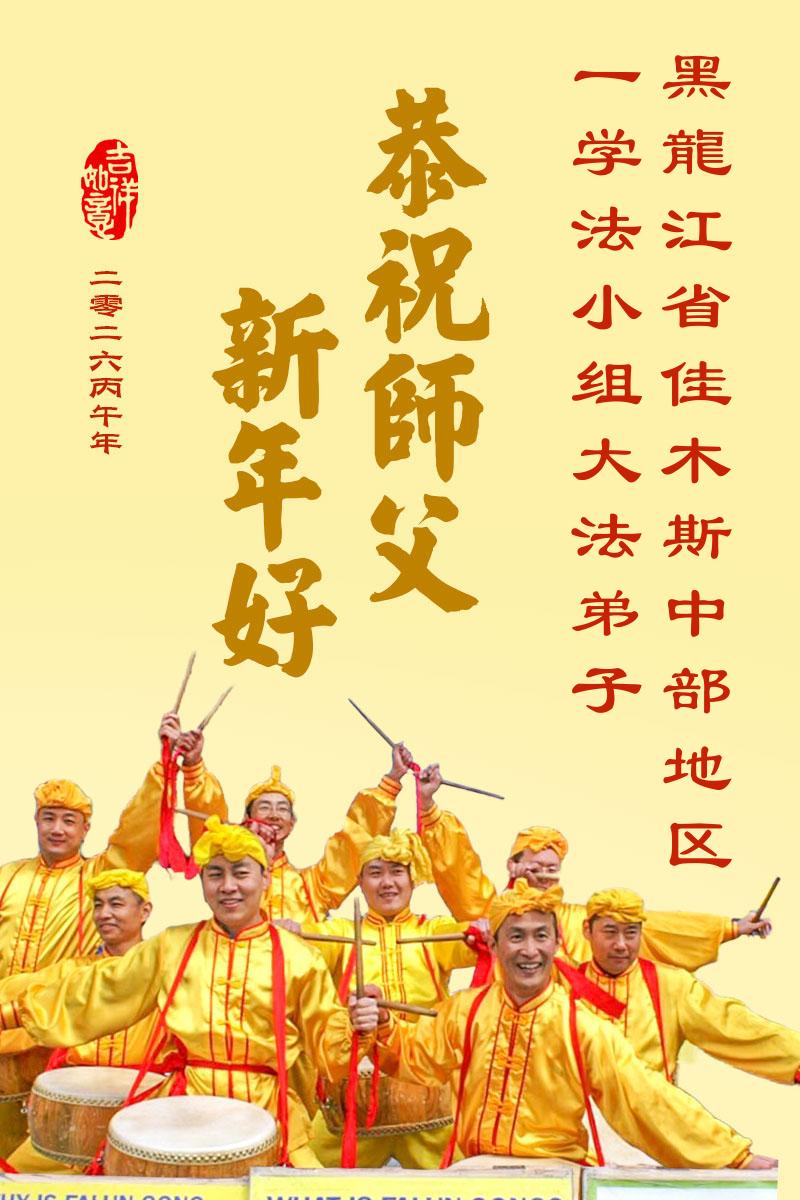 恭祝师尊新年快乐!弟子叩拜师尊! 跨越时空法轮转,正法進入二六年。 感恩师尊慈悲度,救度众生正苍宇。 法船启航法徒乘,佛恩浩荡振寰宇。 黑龙江省佳木斯市三位大法弟子敬上 二零二六年一月十九日 黑龙江省绥化市一大法弟子恭祝慈悲伟大的师尊新年快乐!