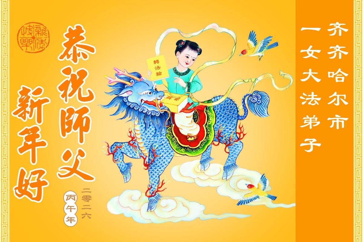 感恩师尊慈悲苦度!在新的一年里精進实修 祝师父新年快乐!春日金光照峥程。 跪拜恩师新年乐,弟子悔恨不精進。 随师攀蹬回归路,剩时努力苦修炼。 黑龙江省佳木斯中部地区一学法小组大法弟子敬上 二零二六年一月二十三日 黑龙江省齐齐哈尔市一女大法弟子恭祝师父新年好!