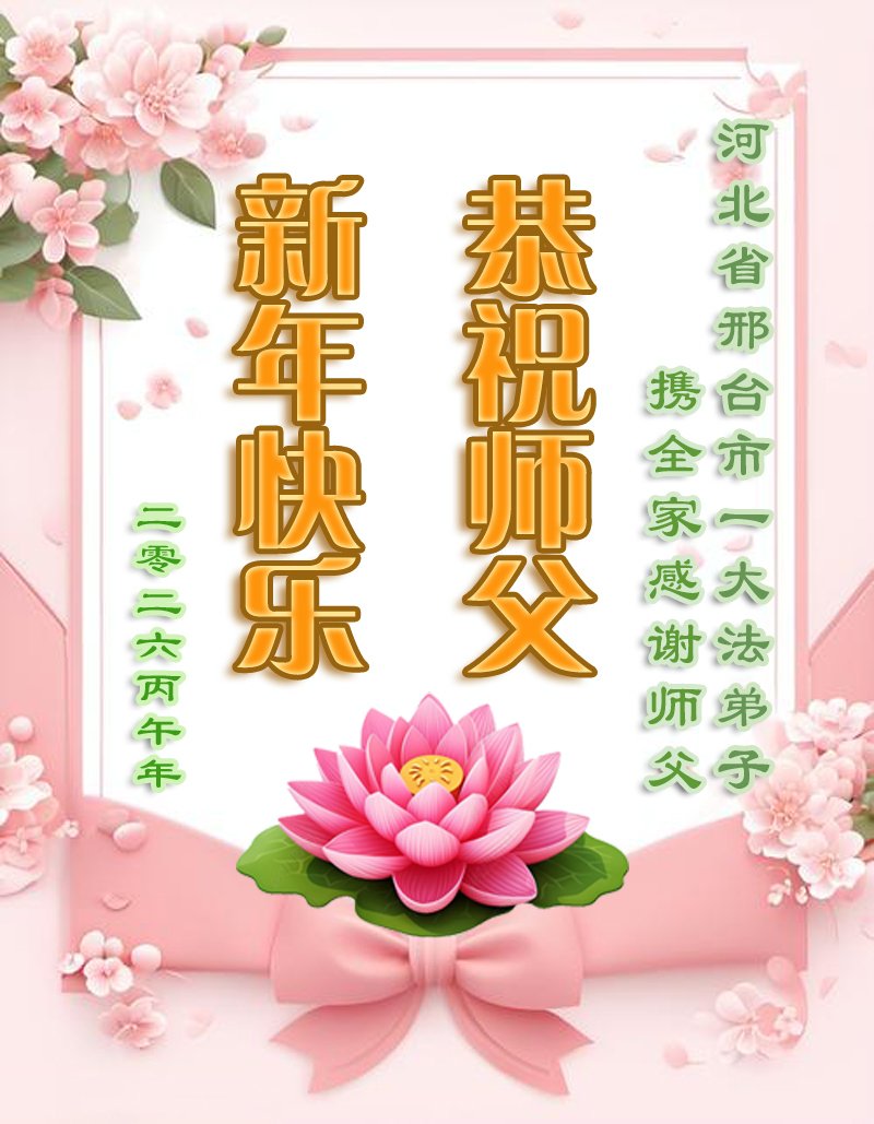 师父好!弟子给您拜年了!弟子想念您! 我们一定修好自己,做好三件事,跟您回家! 河北省邢台市信都区大法弟子敬上 二零二六年一月十八日 河北省唐山市迁安市大法弟子夫妻携全家人恭祝师尊新年好!
