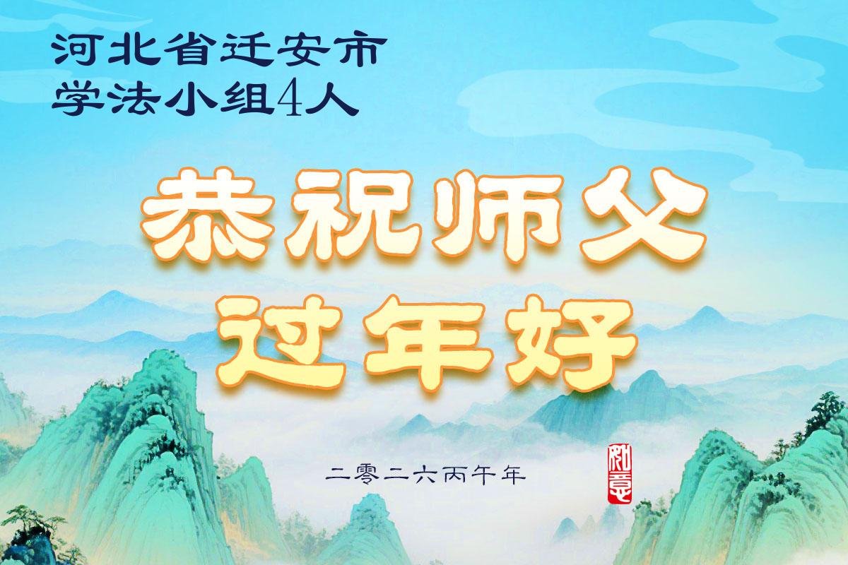 恭祝师尊过年好!师尊辛苦了! 感恩师尊慈悲苦度!谢谢师尊! 弟子们盼望与师尊相见的那一天! 河北省廊坊市一家大法弟子敬上 二零二六年一月十八日 河北省唐山市迁安市一学法小组全体五位大法弟子恭祝师父新年好!