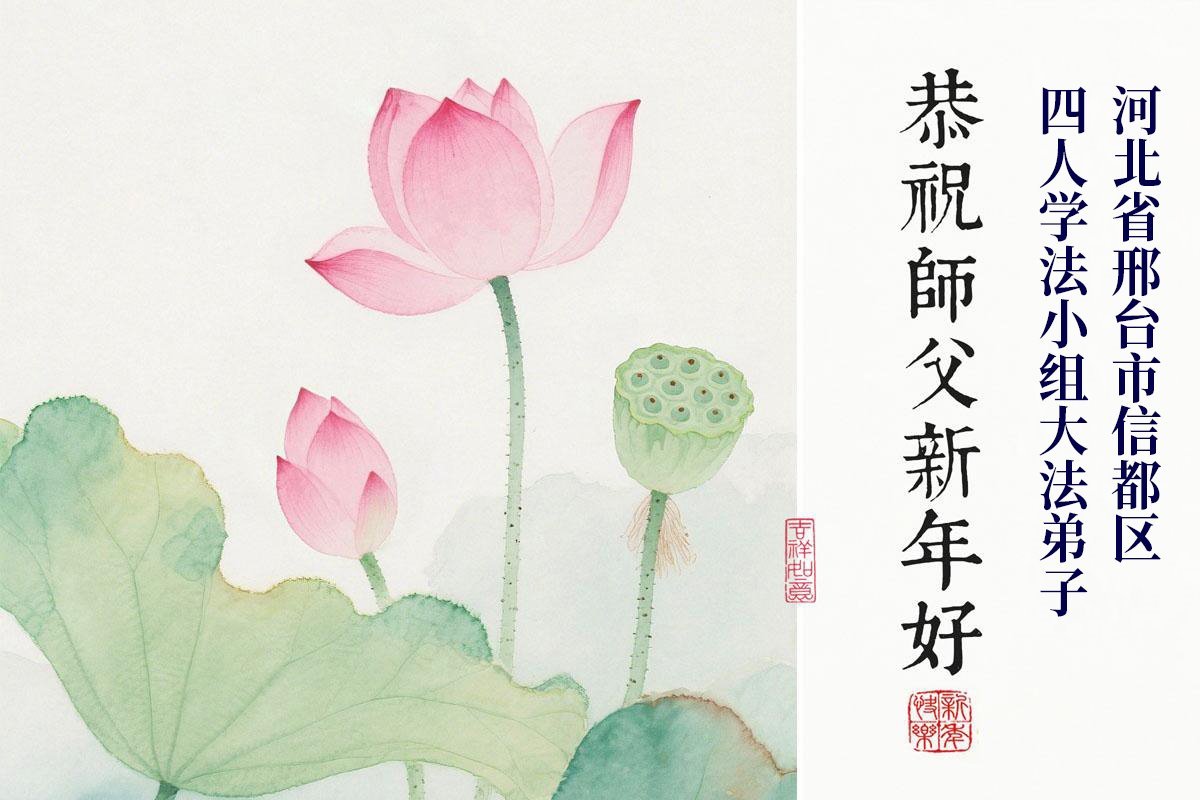 师父您好!师父辛苦了!谢谢师父慈悲苦度!我们两人在新的一年里一定相互配合好,修好自己,做好三件事,跟师父回家! 河北省沧州市两人学法小组大法弟子敬上 二零二六年一月十九日 河北省邢台市信都区四人学法小组大法弟子恭祝师尊新年快乐!