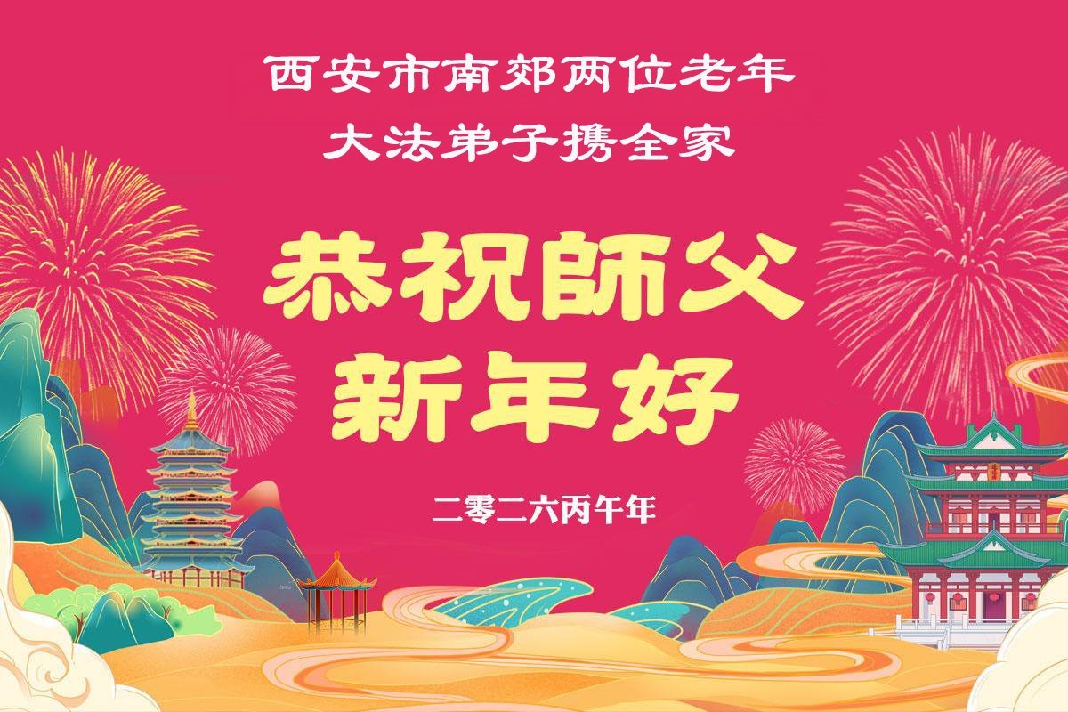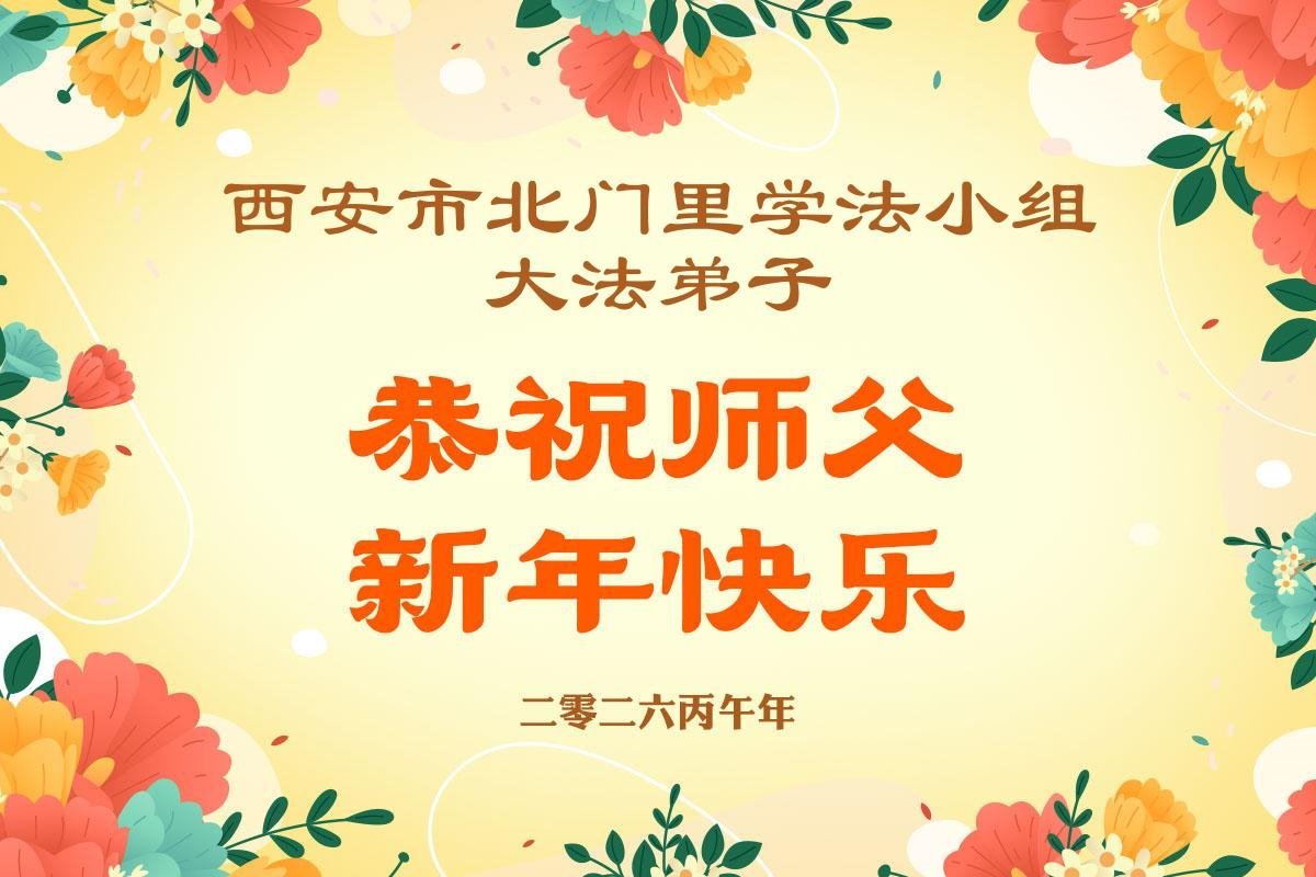 恭祝师尊新年快乐! 感恩师尊慈悲救度!在这有限的时间里,弟子们一定听师尊的教诲,多学法修好自己,做好三件事多救人,跟师尊回家! 山西省大同地区一学法小组大法弟子敬上 二零二六年二月九日 陕西省西安市北郊三位老年大法弟子恭祝师父新年快乐!