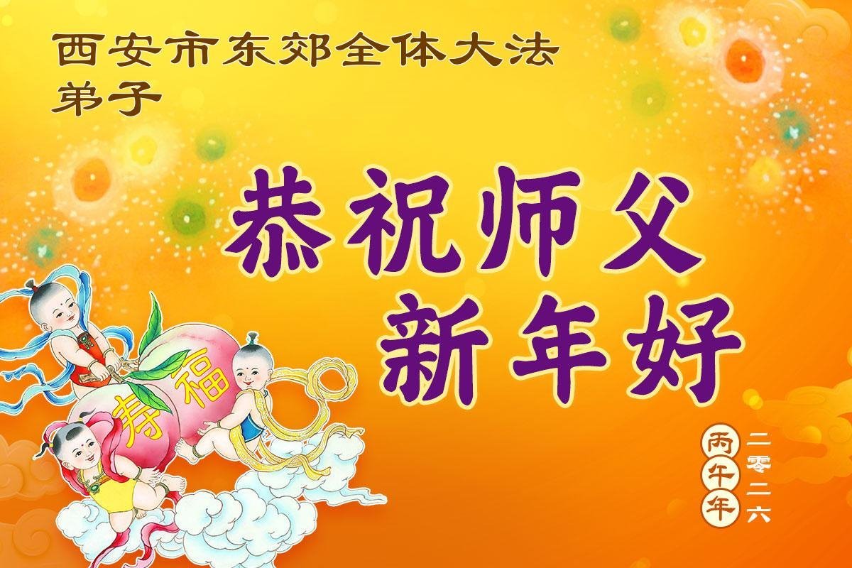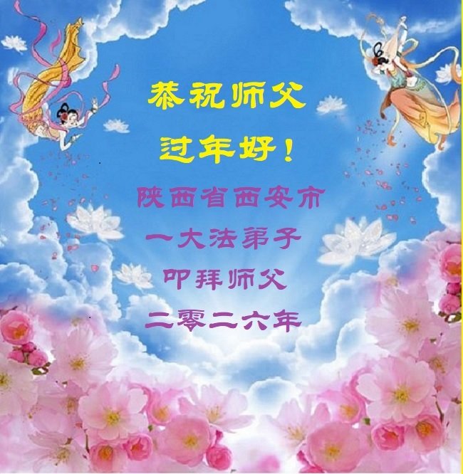 恭祝慈悲为大的师尊新年快乐! 甘肃省白银市平川区全体大法弟子敬上 二零二六年二月九日 陕西省西安市北郊五人学法小组大法弟子恭祝师父新年快乐!