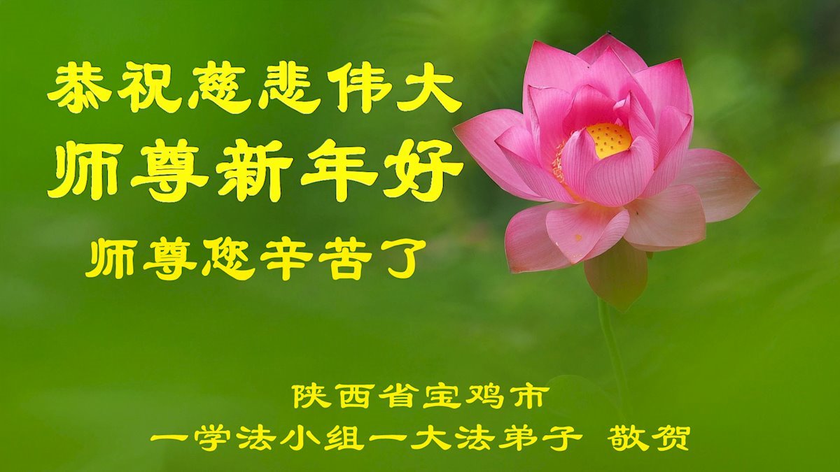 恭祝慈悲伟大的师尊新年好!师尊您辛苦了!您的高德大法不但度弟子们在回归,同时也在唤醒着明白了真相的众生的身心。感恩师尊的慈悲救度与保护!在这最后关键时刻,比学比修、精進实修,兑现誓约,做好三件事,完成使命,随恩师走到最后! 陕西省宝鸡市一学法小组大法弟子敬上 2026年1月13日 陕西省宝鸡市两人学法小组大法弟子恭祝慈悲伟大的师尊新年快乐!