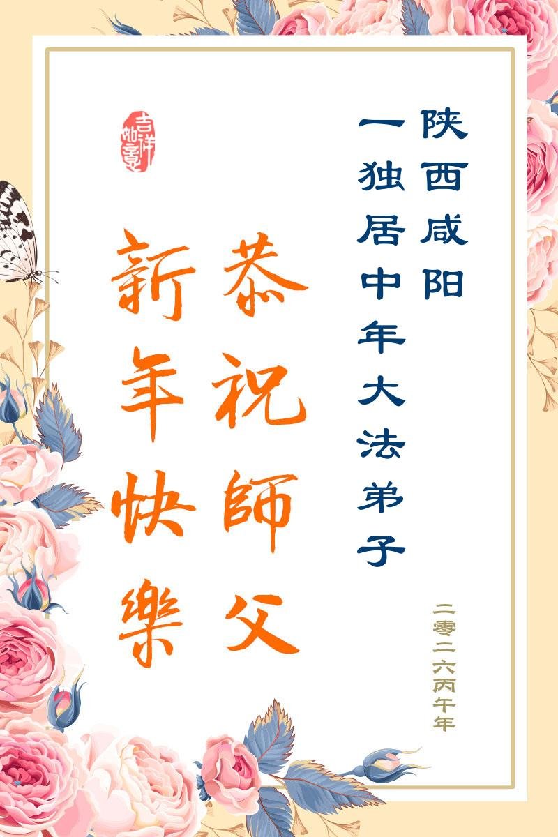 新的一年里,弟子们一定学好法,实修自己,做好三件事,跟师尊回家。 陕西省咸阳市礼泉县一学法小组大法弟子 二零二六年二月十四日 陕西咸阳一独居中年大法弟子给师父拜年!