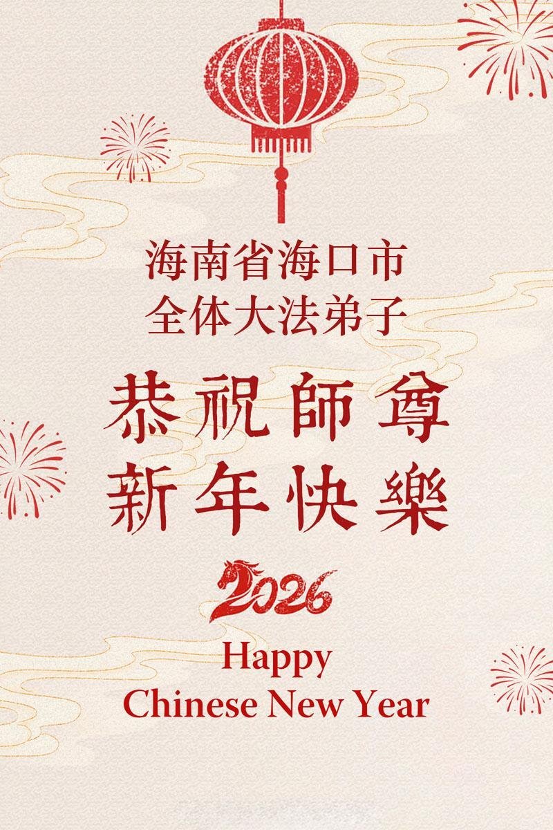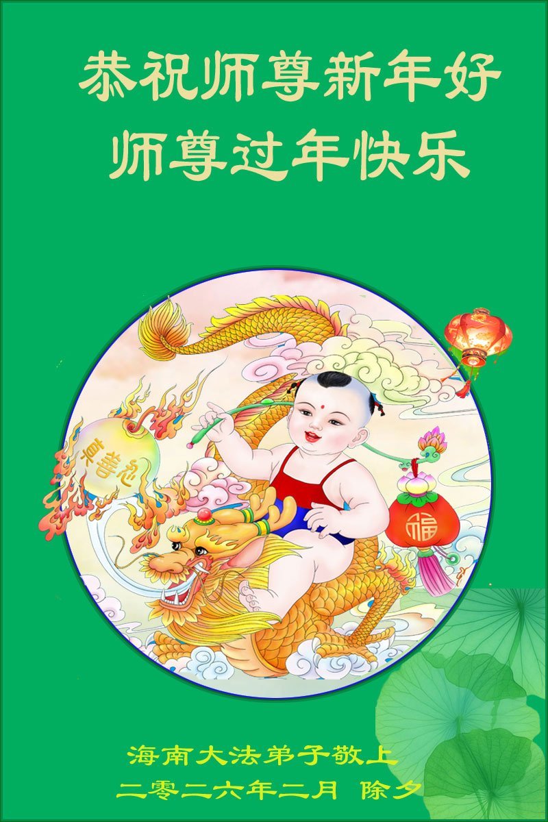 恭祝师父新年快乐! 法轮大法好!真善忍好! 海南省海口市秀英区全体大法弟子敬上 二零二六年二月六日 海南省海口市秀英区母子大法弟子恭祝师尊新年好!