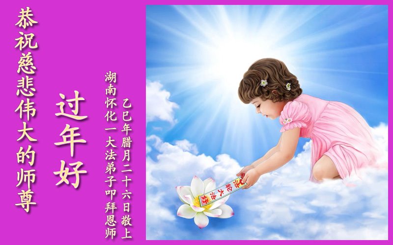 恭祝慈悲伟大的师尊过年好!叩谢恩师! 湖南省怀化市一大法弟子敬上 江苏省连云港市东海县大法弟子恭祝慈悲伟大的师尊新年快乐!
