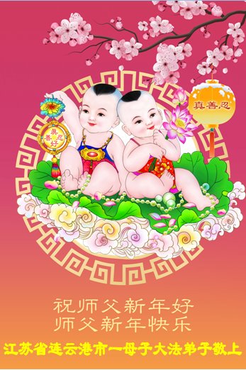 江苏省连云港市一母子大法弟子恭祝师尊新年快乐!