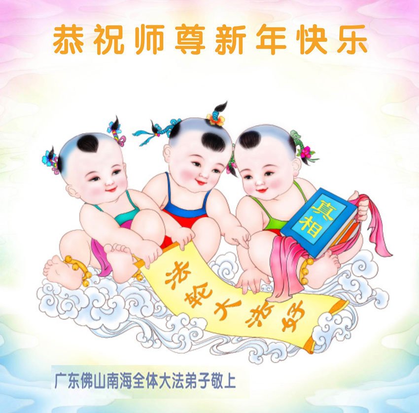 恭祝师尊过年好!法轮大法好!真善忍好! 弟子们想念师尊,用人类的言语道不尽对师尊的感恩!感恩师尊慈悲苦度!我们小组年龄有九二、八六、七六、六六,最小的五十四。有稳步走到今天做好三件事的学员,有坚持做好师父要求的三件事、面对面讲真相救人的学员,有从邪恶黑窝受迫害出来的同修,我们会互相帮助,抓紧修炼,兑现誓约,跟随师尊回家。 广东省广州市白云区一大法弟子恭祝慈悲伟大的师父过年好!