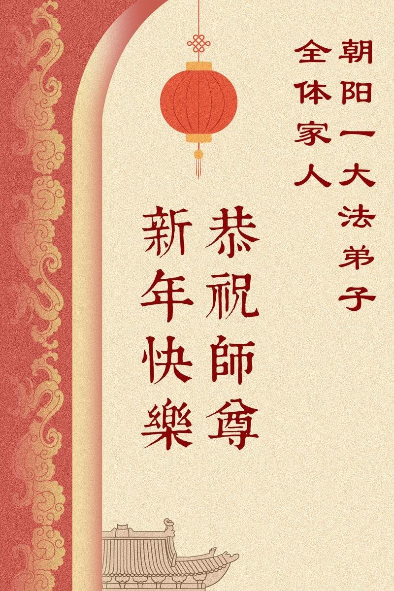 谢谢李大师慈悲救度众生,我们都是受益者,常念法轮大法好,受益多多。感谢李大师慈悲保护,祝李大师新年快乐!早日回到中国。 辽宁朝阳一大法弟子全体家人敬上 二零二六年二月六日 辽宁省大连市甘井子区明真相夫妻二人恭祝李大师过年好!