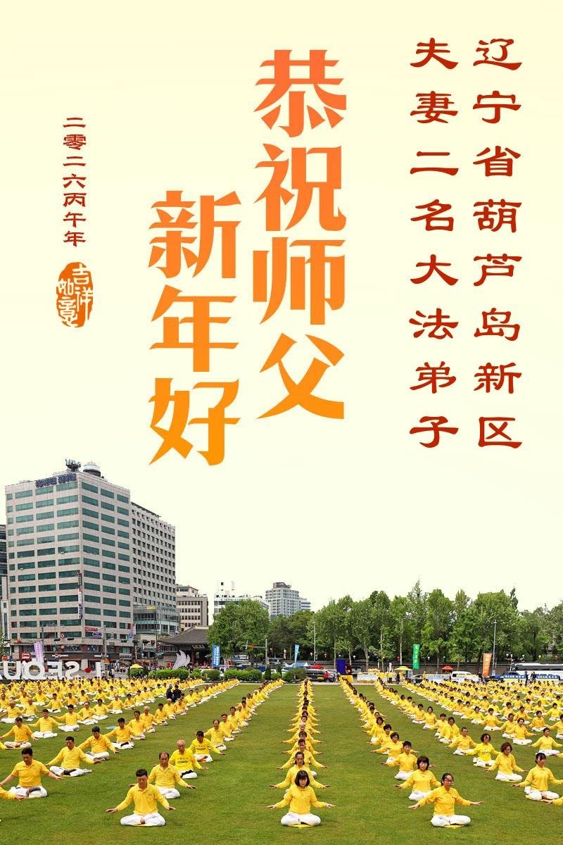 辽宁一大法弟子 二零二六年二月十三日 辽宁葫芦岛一夫妻大法弟子恭祝师尊新年快乐!