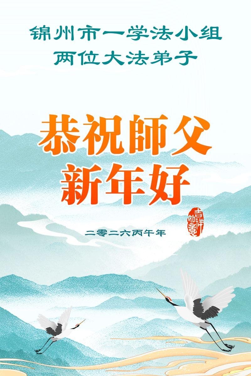 恭祝慈悲伟大的师尊过年好! 在末劫助师正法救度众生这重大的历史时刻,感恩师尊领弟子走过低谷,弟子谨记师尊的教诲,精進实修做好三件事,救更多的有缘人,以报师恩! 辽宁省大连市一学法小组四名大法弟子敬上 二零二六年二月八日 辽宁省锦州市三位大法弟子恭祝慈悲伟大的师父过年好!