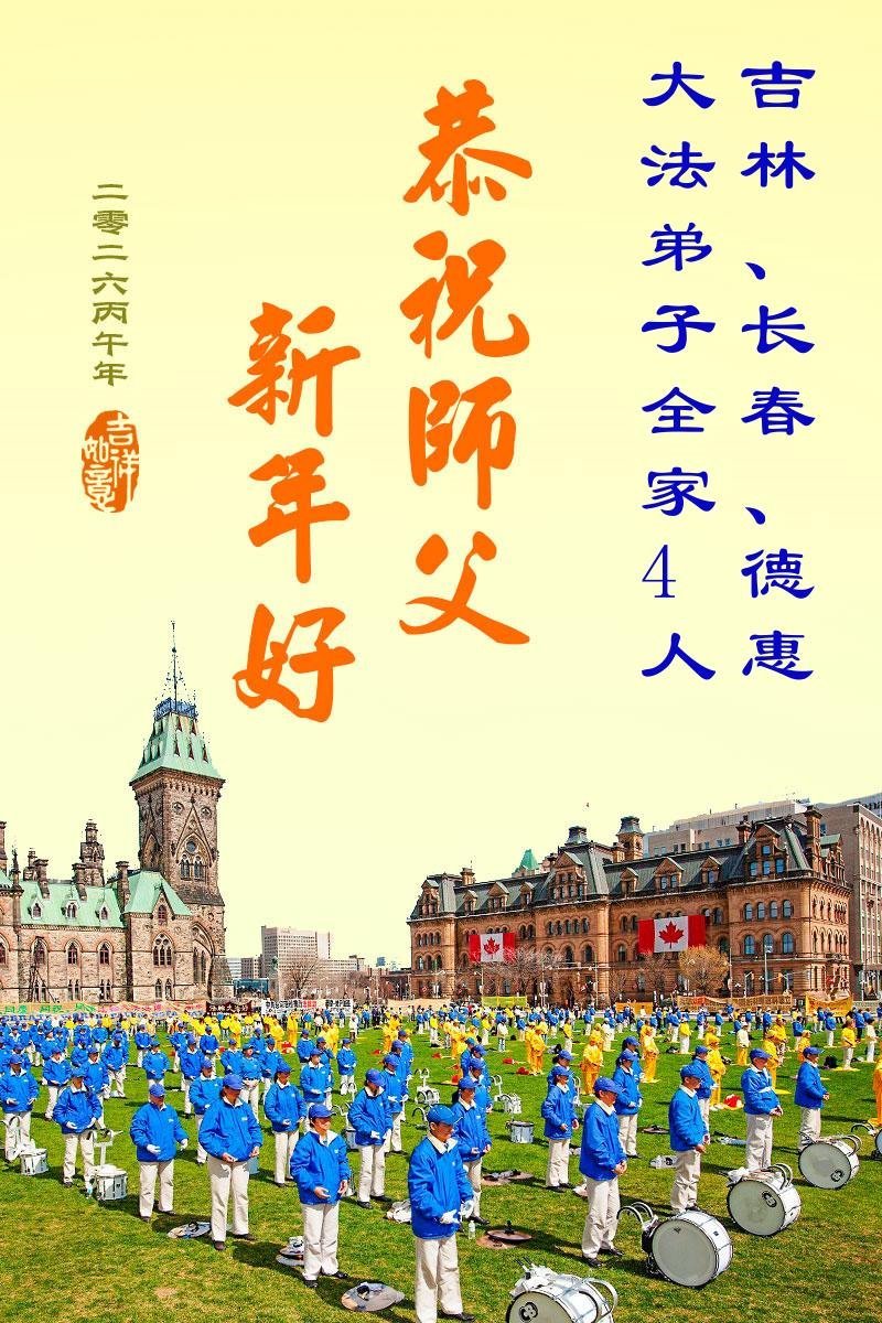【明慧网二零二六年二月十八日】 吉林省长春大法弟子和全家人恭祝慈悲伟大的师父新年快乐!