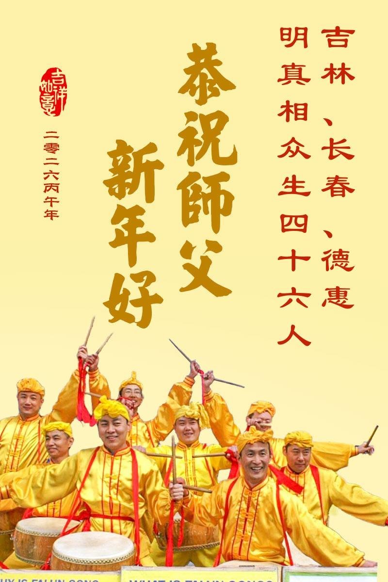 真诚叩拜伟大慈悲的李洪志师父! 吉林省长春德惠大法弟子敬上 二零二六年二月七日 吉林省吉林、长春、德惠明真相众生四十六人恭祝李洪志师父新年好!
