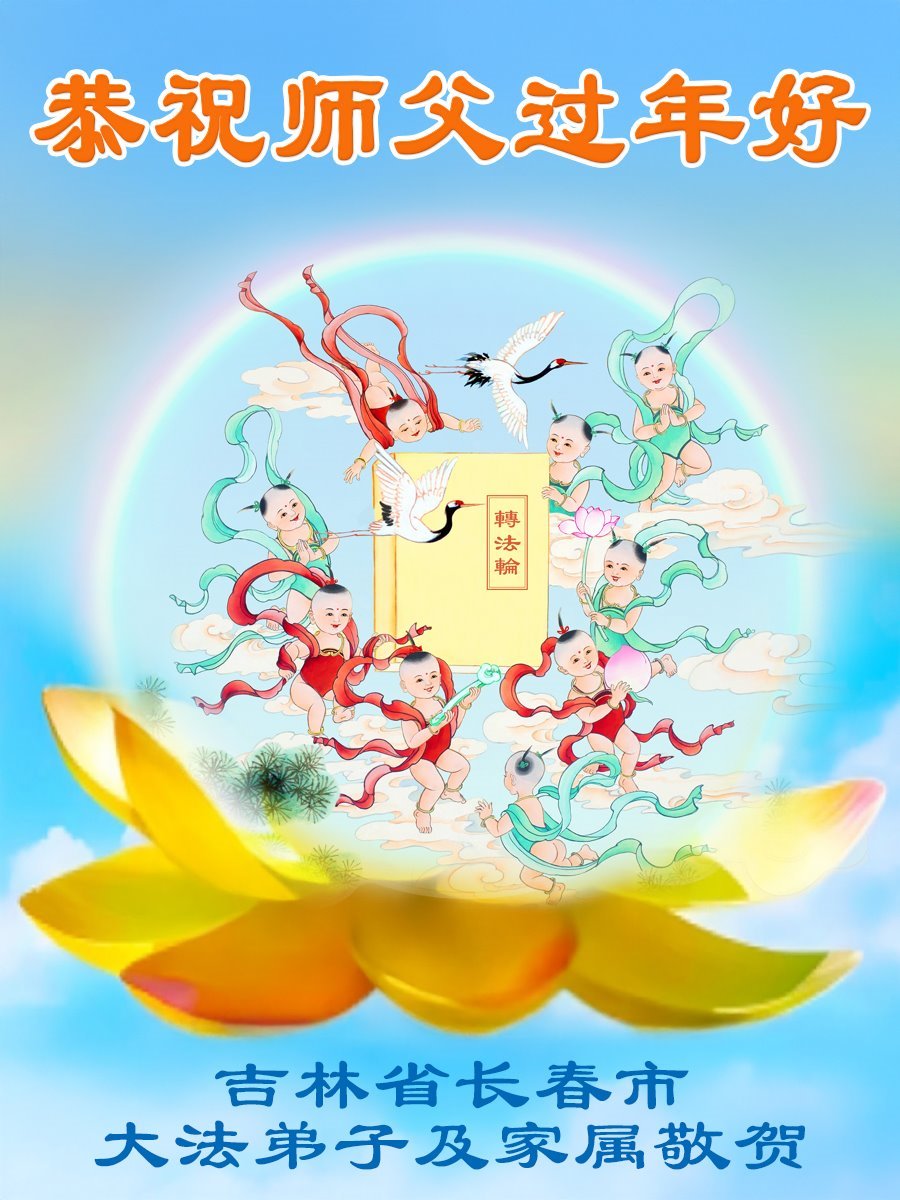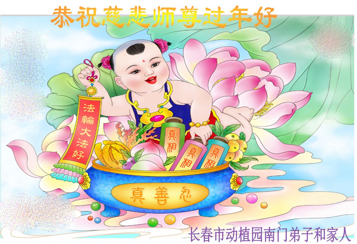 恭祝慈悲伟大的师尊过年好!感恩师尊慈悲救度和再造之恩。 吉林省长春市大法弟子敬上 吉林省长春市学法组大法弟子恭祝慈悲伟大的师尊过年好!