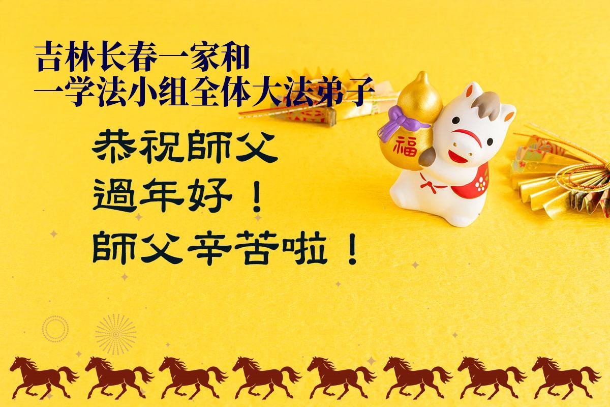 恭祝师父过年好! 吉林省长春市大法弟子及家属敬上 吉林省长春市一家庭和一学法小组全体大法弟子恭祝慈悲伟大的师父新年快乐!