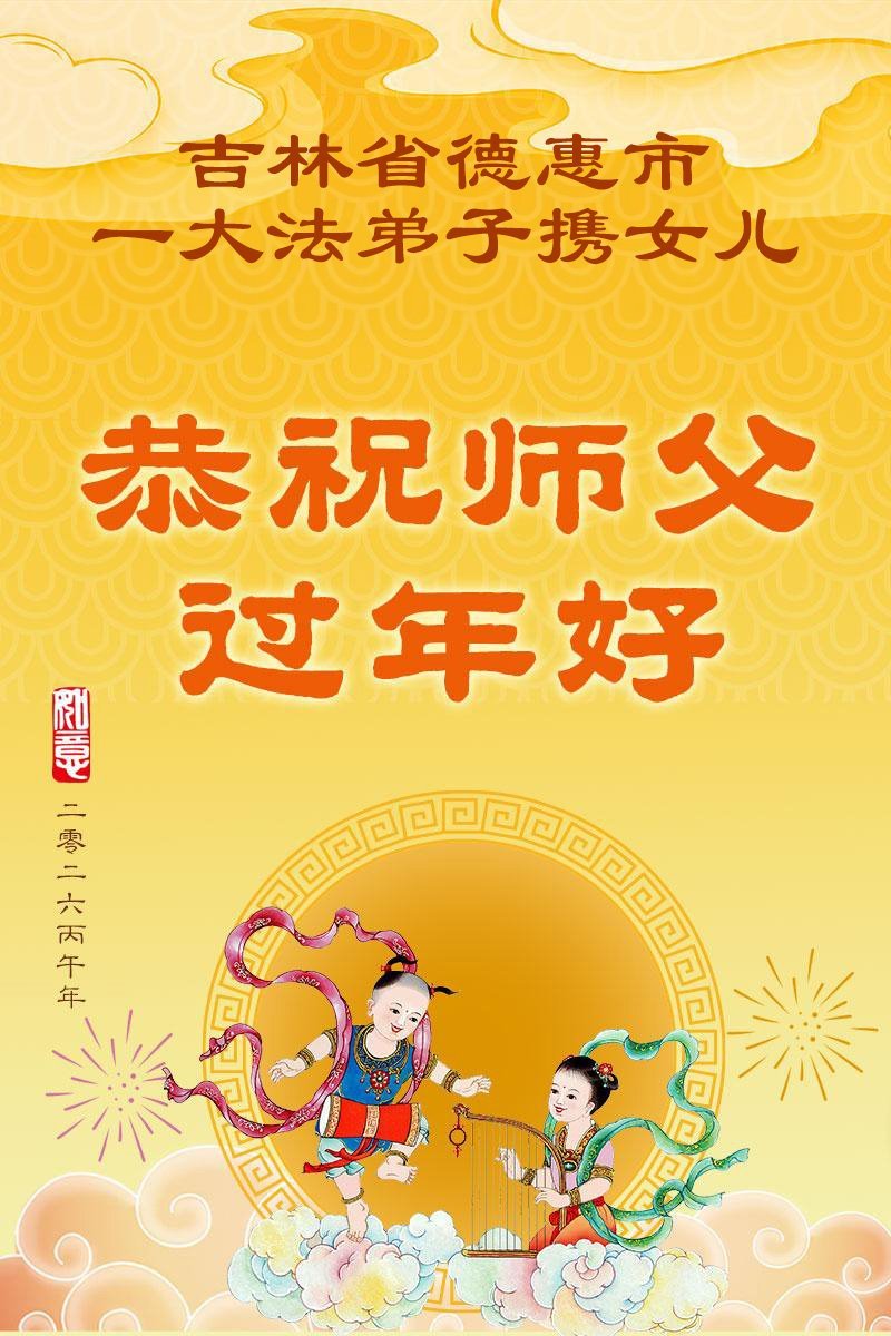 恭祝慈悲伟大的师尊过年好!感恩师尊慈悲救度。 吉林省长春市大法弟子敬上 吉林省长春德惠大法弟子全家四人恭祝师父新年快乐!