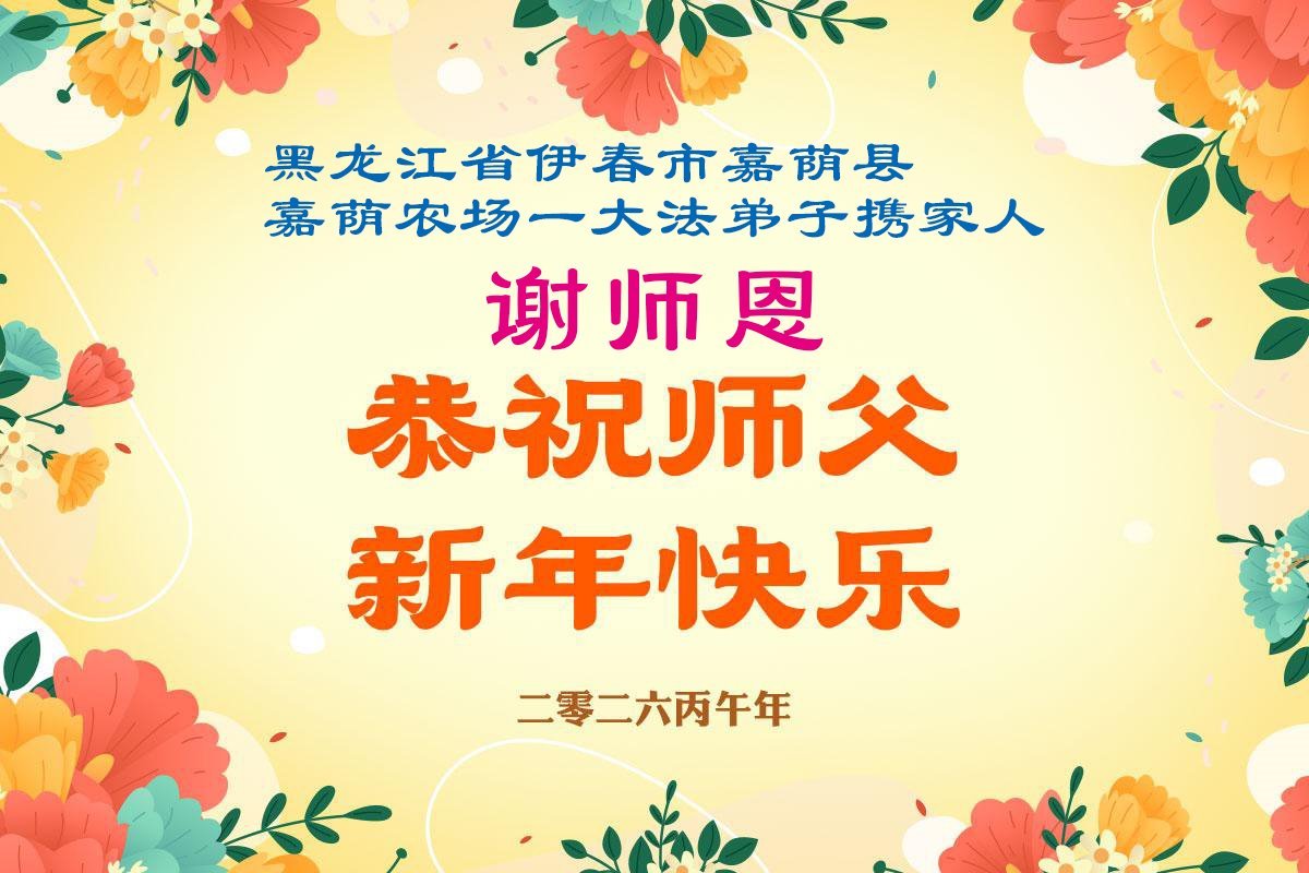 恭祝师尊新年快乐!感恩师尊慈悲救度!家人感恩在佛光普照下平安幸福快乐的生活。法轮大法好!真善忍好! 黑龙江省伊春市嘉荫县嘉荫农场一大法弟子携家人敬上 二零二六年二月八日 黑龙江省齐齐哈尔市大法弟子恭祝师父新年好!