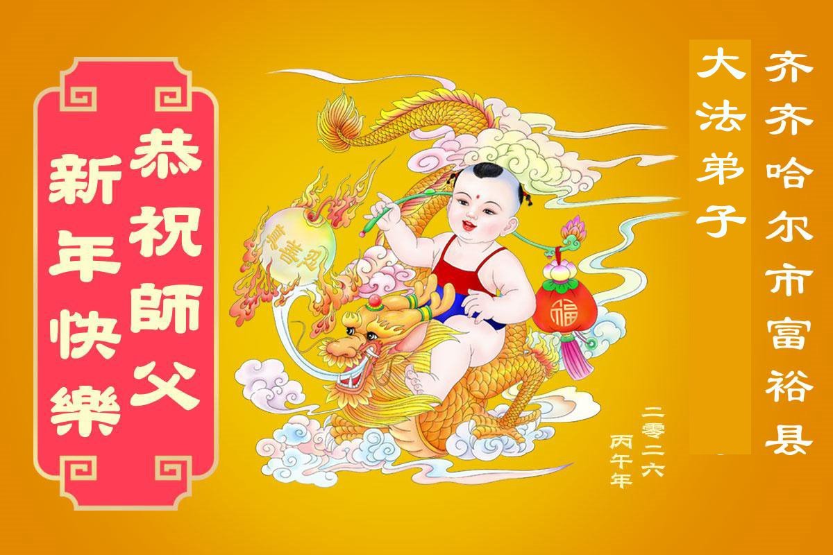 黑龙江省齐齐哈尔市龙江县夫妻大法弟子恭祝师父过年好!