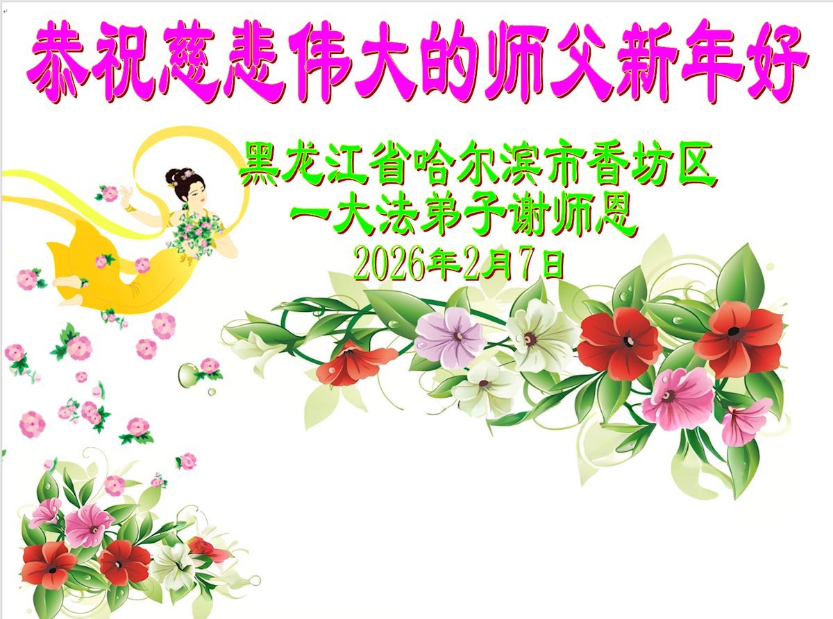 弟子能走到今天,离不开师父的一路看护!弟子唯有学好法,做好三件事,跟师父回家。弟子叩拜师父! 哈尔滨大法弟子敬上 二零二六年二月六日 黑龙江省哈尔滨大法弟子恭祝师父过年好!