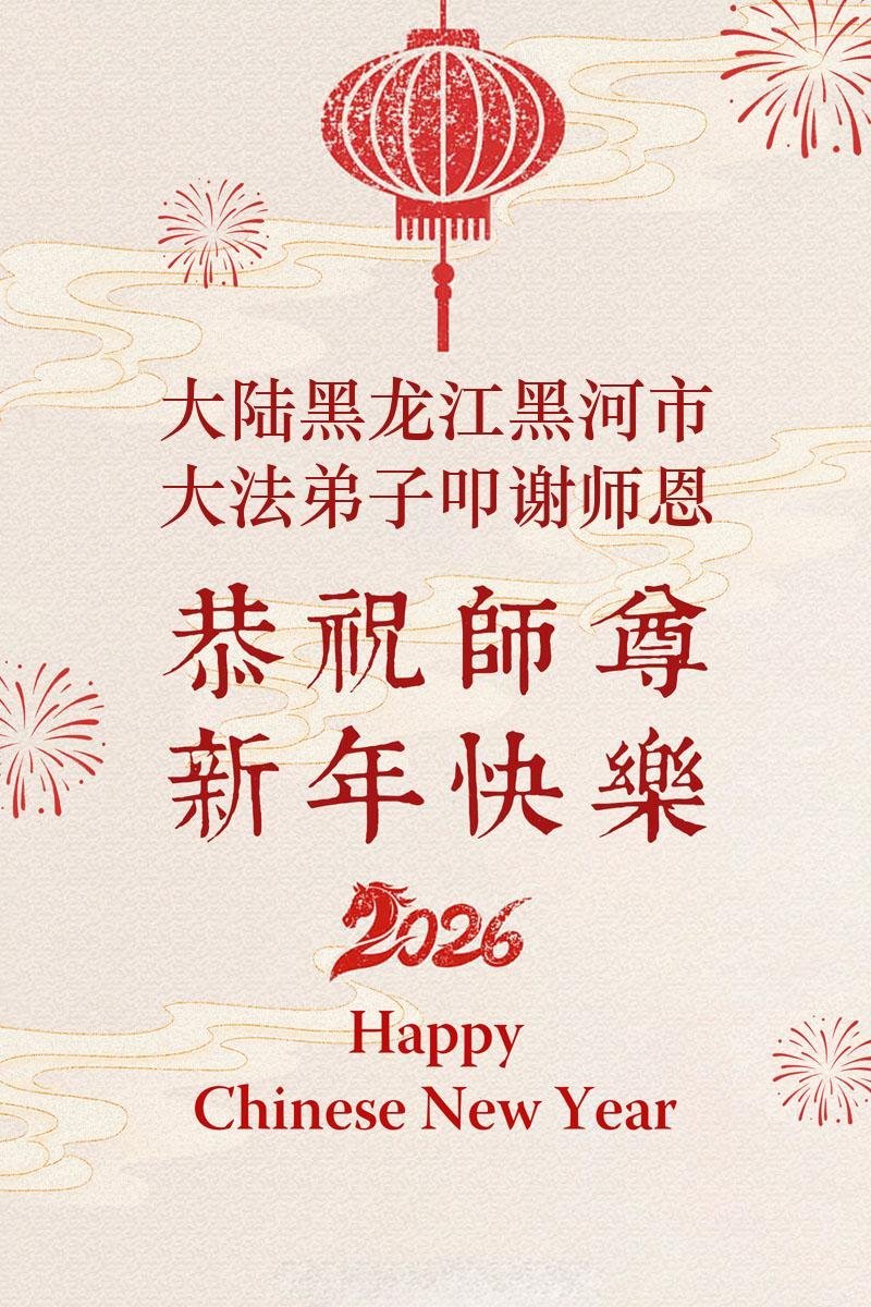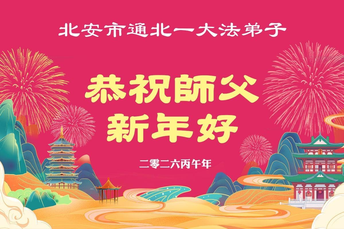恭祝师尊新年好! 感恩师尊慈悲救度! 黑龙江省北安市一大法弟子敬上 二零二六年二月八日 黑龙江省黑河市北安市通北一大法弟子恭祝师尊新年好!