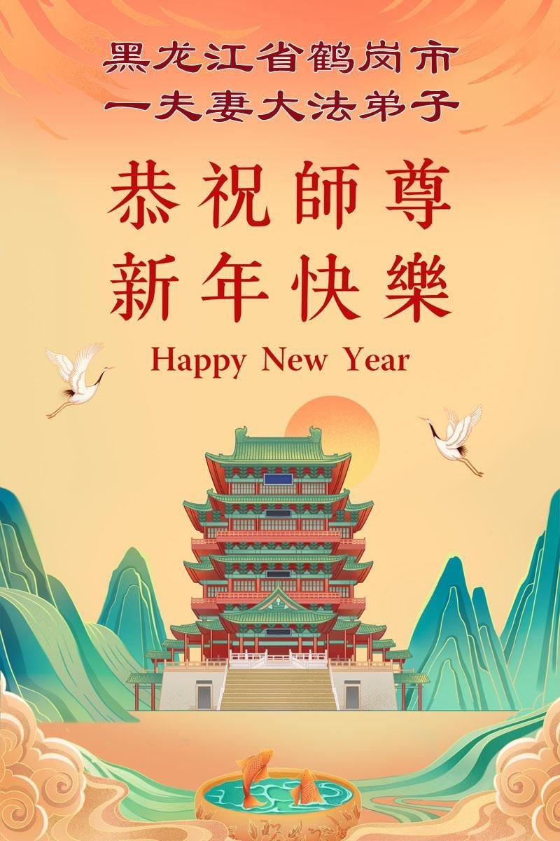 黑龙江省鹤岗市一夫妻大法弟子恭祝师尊新年快乐!