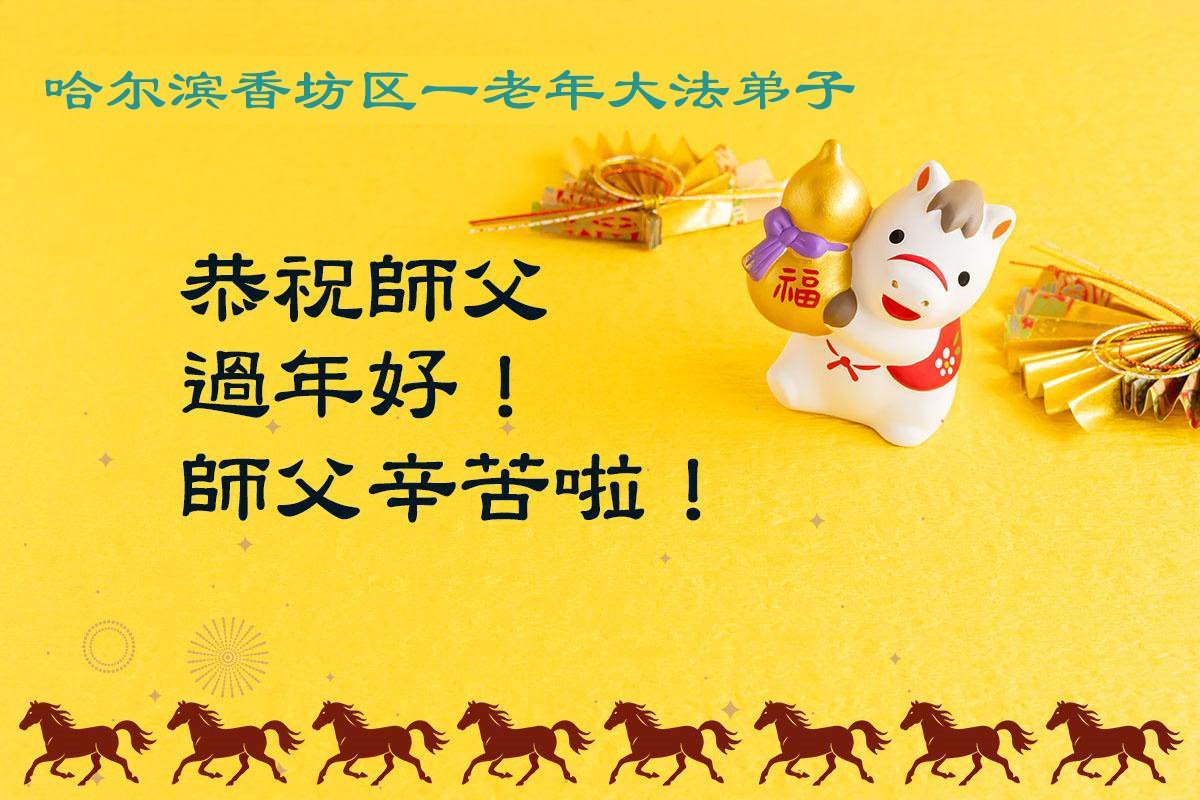 恭祝师尊新年快乐! 黑龙江省哈尔滨市一老年大法弟子敬上 黑龙江省哈尔滨市一老年大法弟子恭祝师父新年快乐!